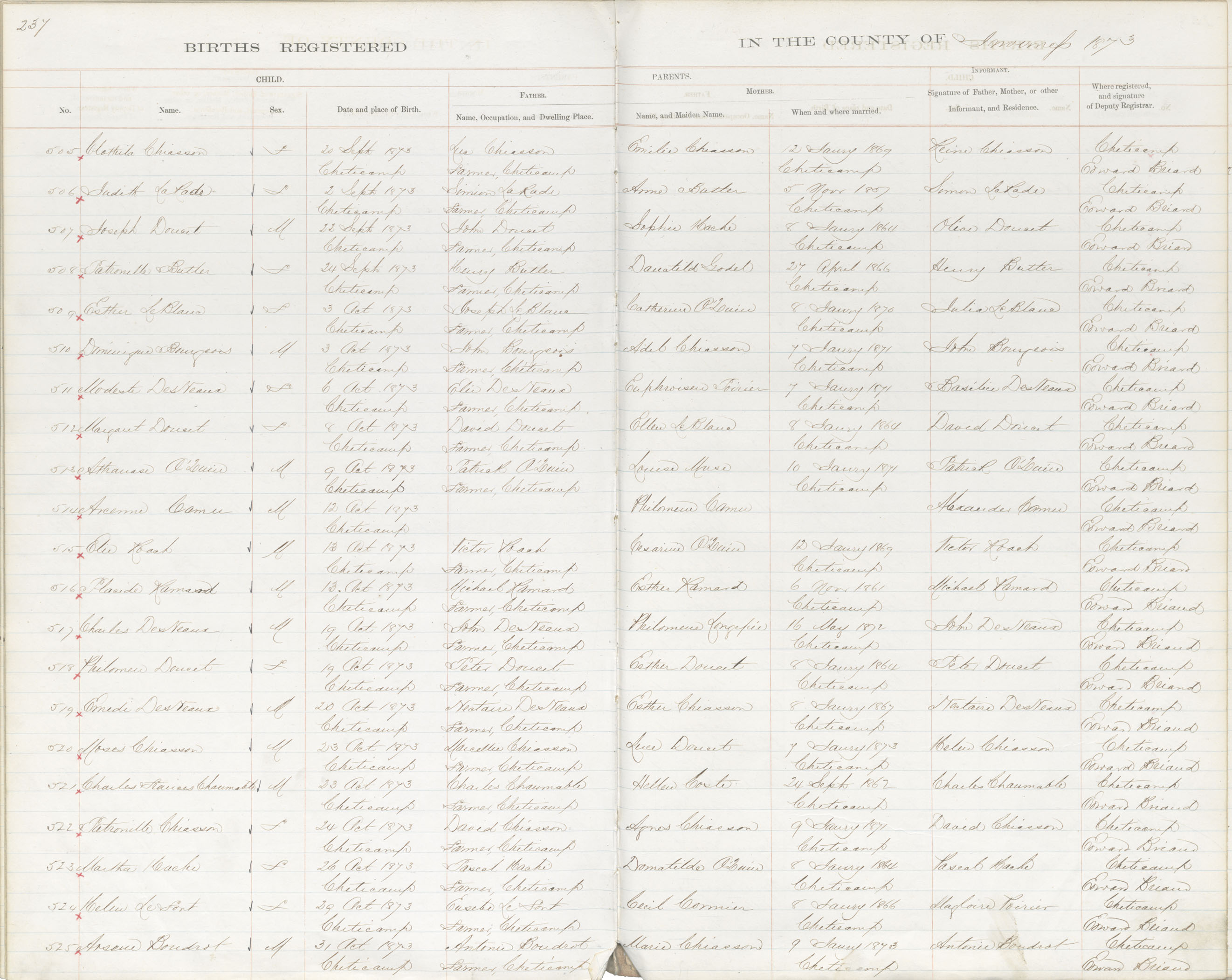 Birth Registration: Year: 1873 book: 1814 page: 237 number: 505