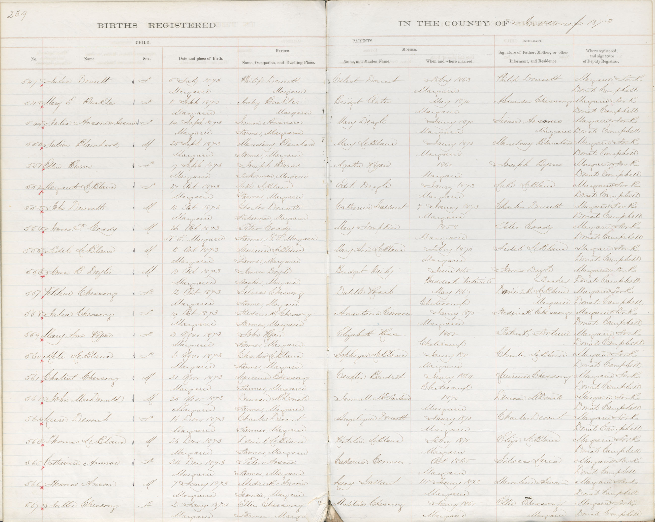 Birth Registration: Year: 1873 book: 1814 page: 239 number: 562
