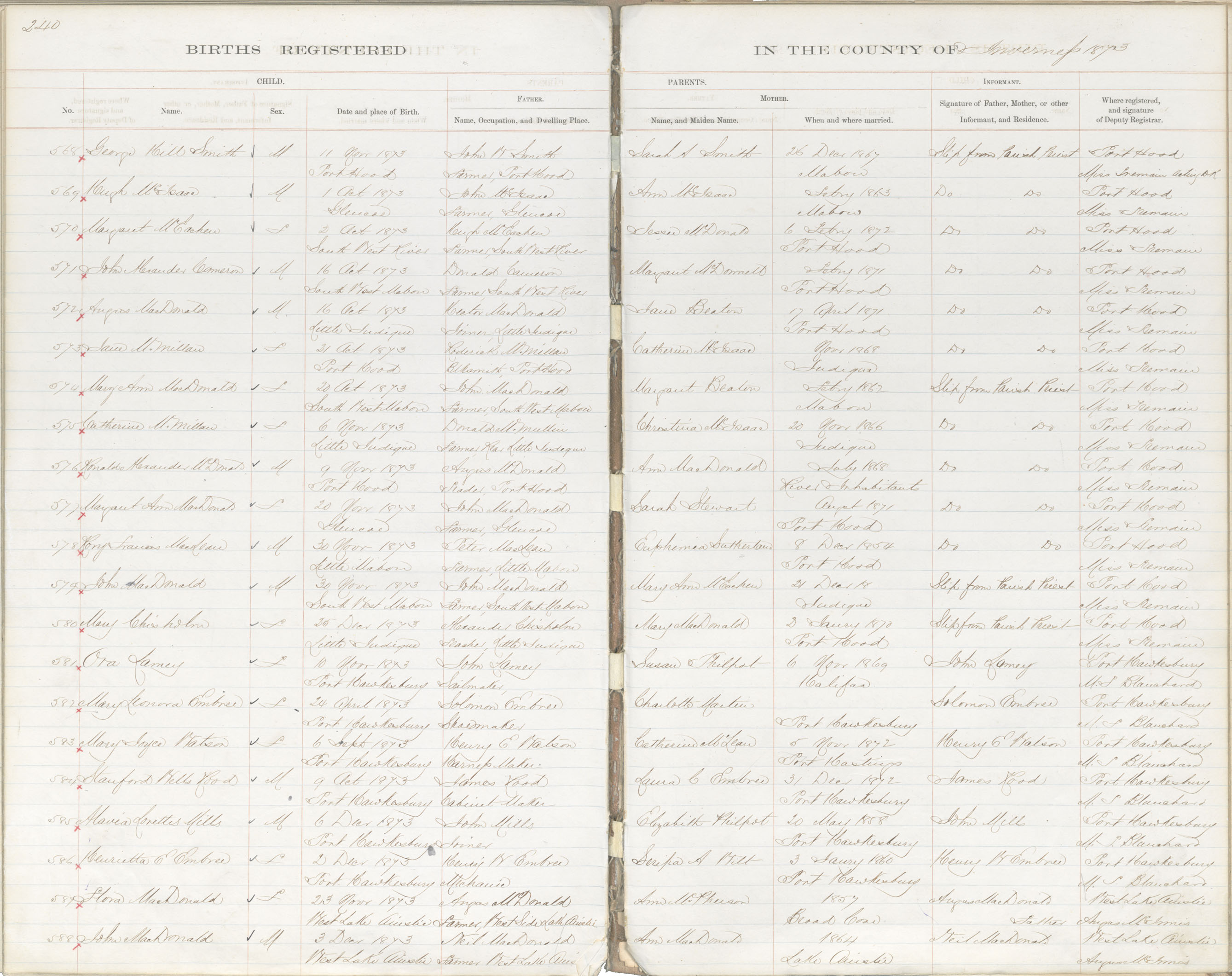 Birth Registration: Year: 1873 book: 1814 page: 240 number: 572