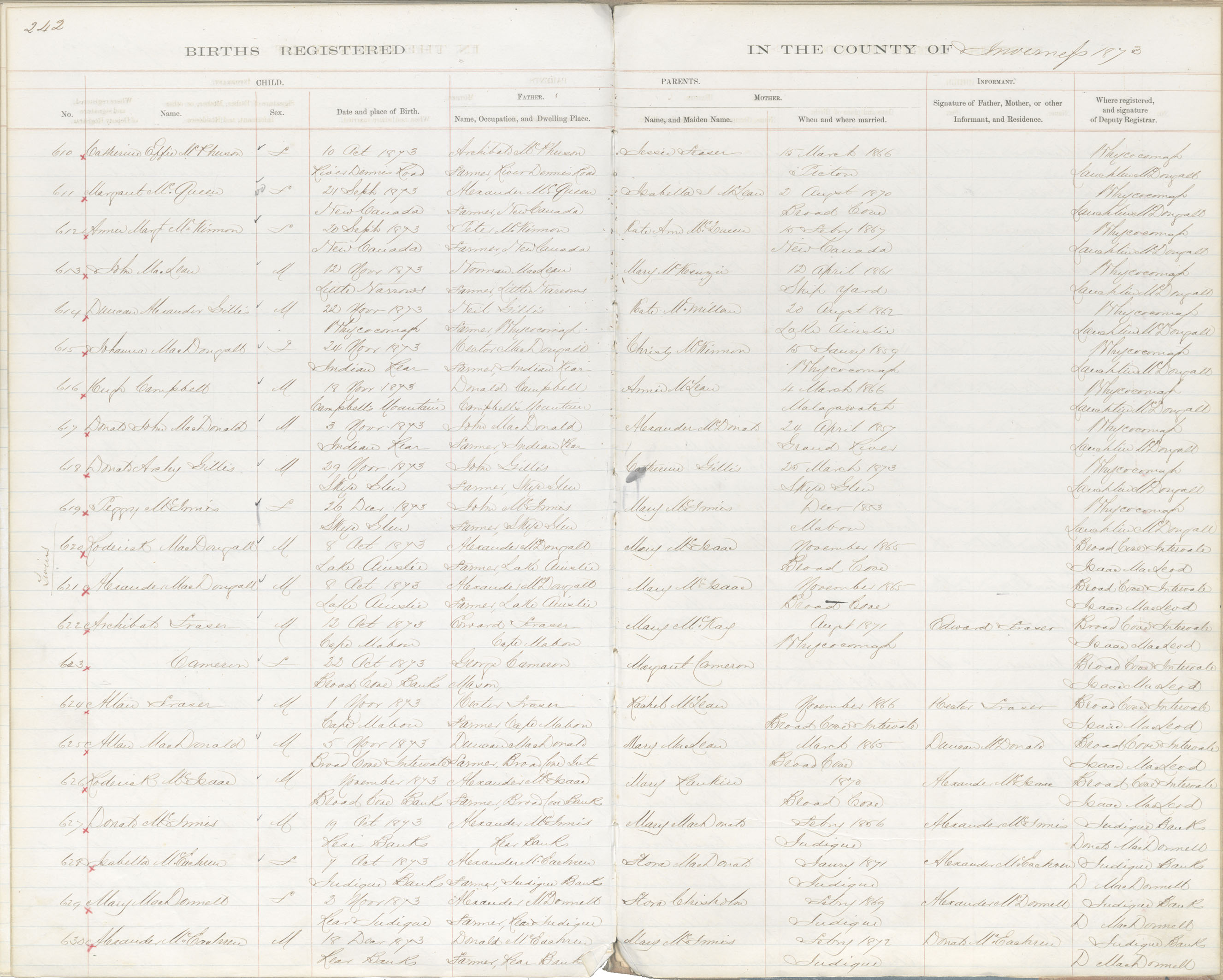 Birth Registration: Year: 1873 book: 1814 page: 242 number: 610