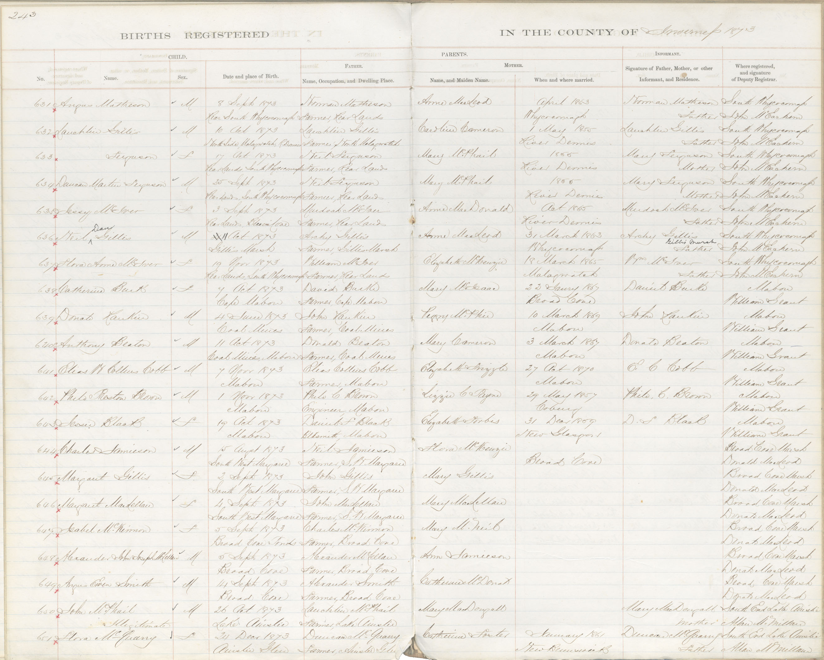 Birth Registration: Year: 1873 book: 1814 page: 243 number: 631