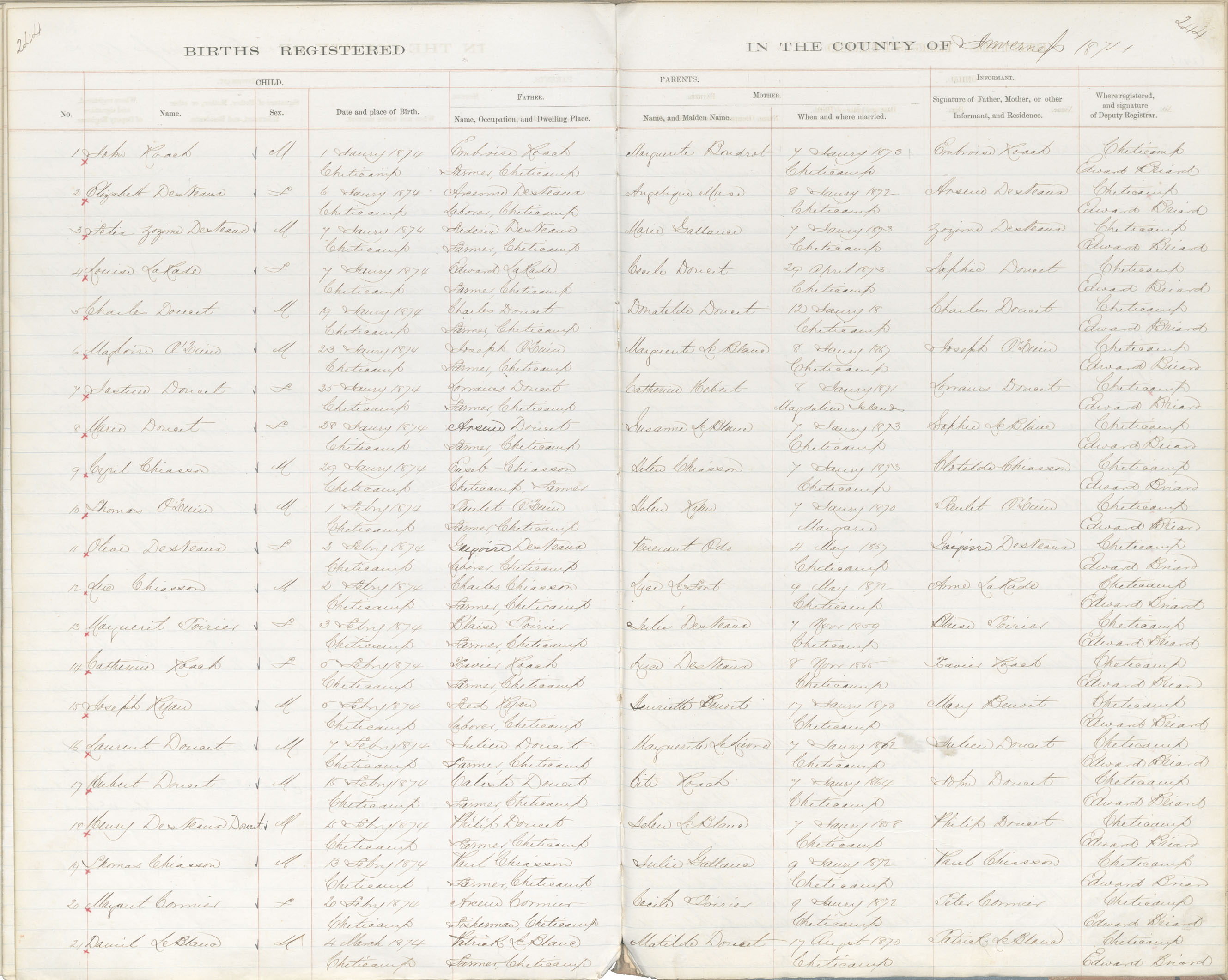 Birth Registration: Year: 1874 book: 1814 page: 244 number: 1