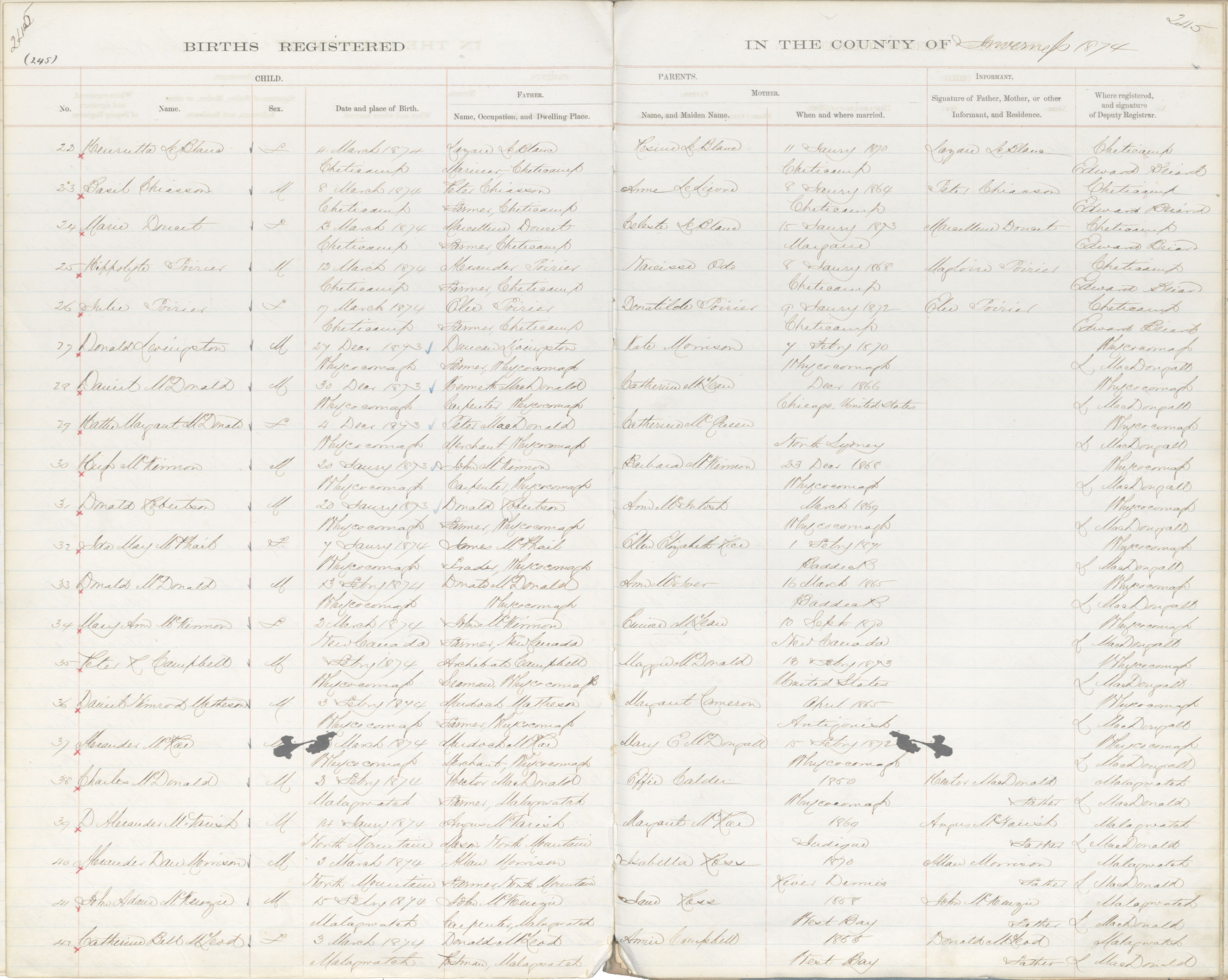 Birth Registration: Year: 1874 book: 1814 page: 245 number: 42