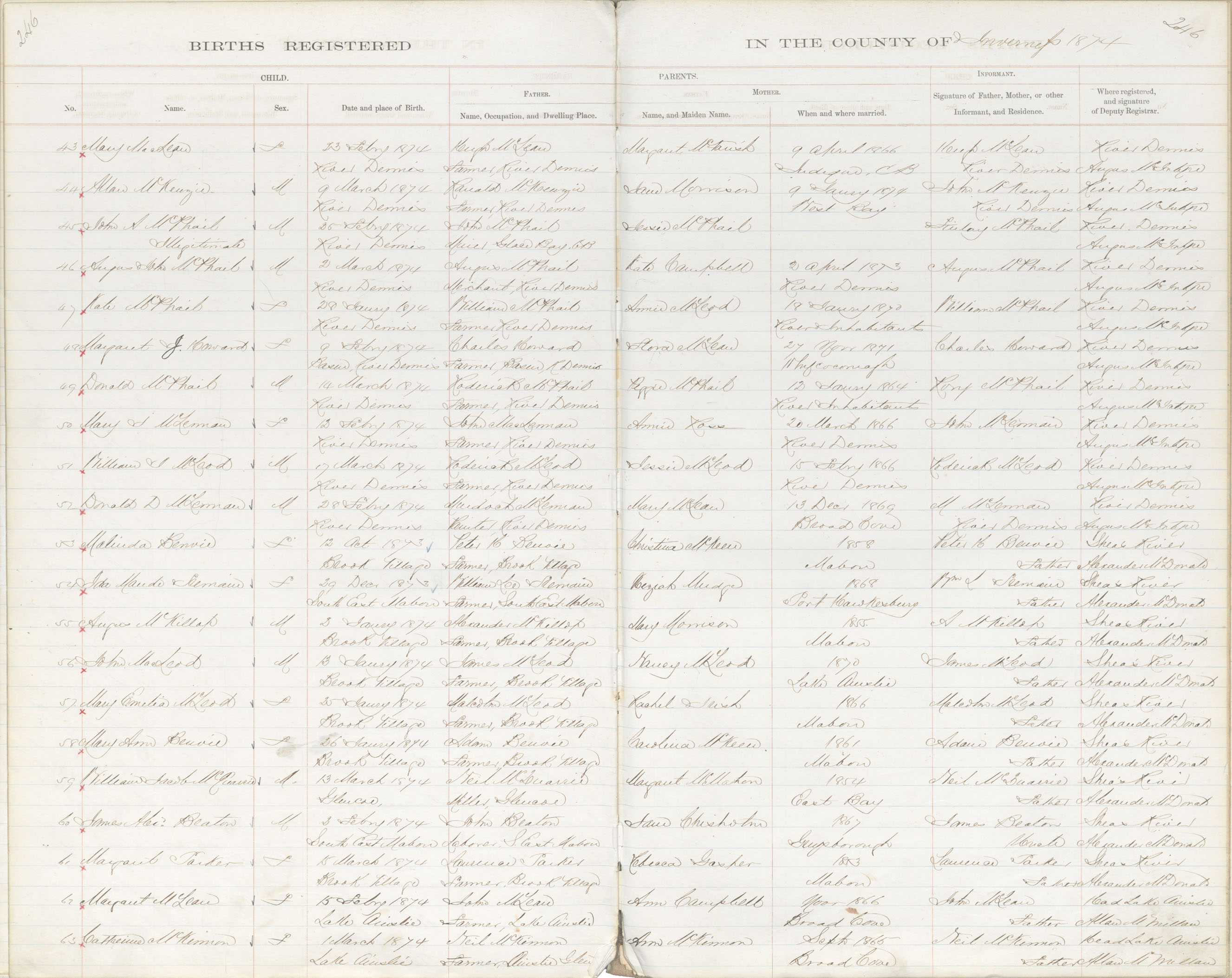 Birth Registration: Year: 1874 book: 1814 page: 246 number: 63