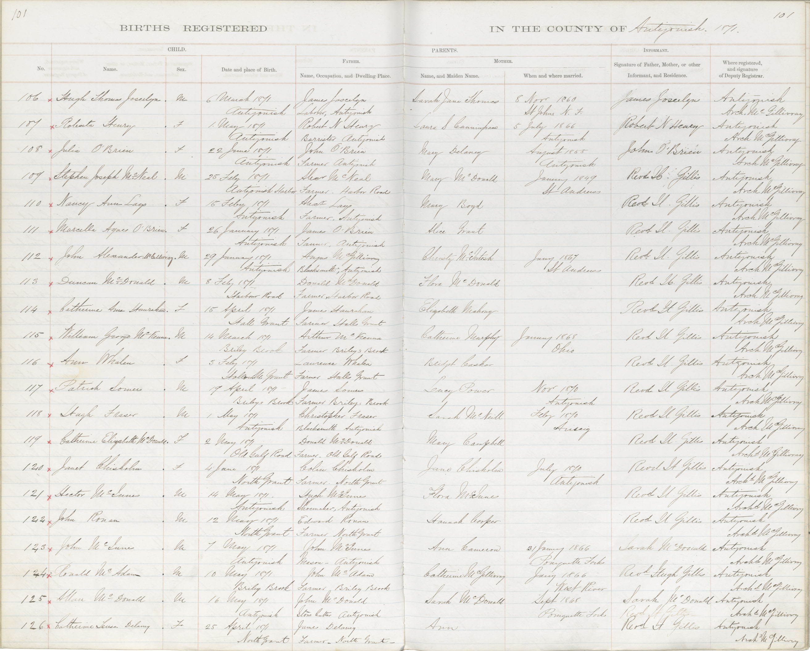 Birth Registration: Year: 1871 book: 1802 page: 101 number: 126
