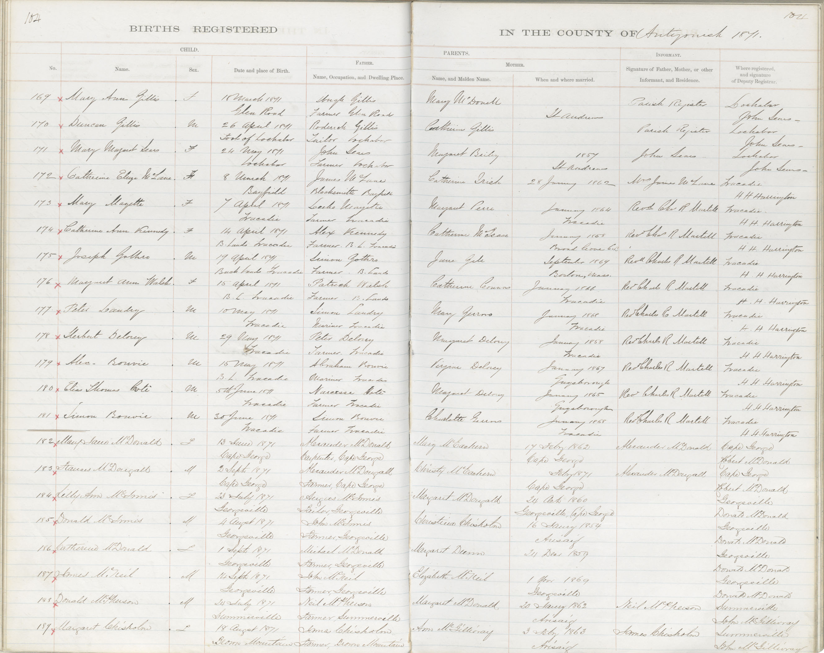 Birth Registration: Year: 1871 book: 1802 page: 104 number: 169