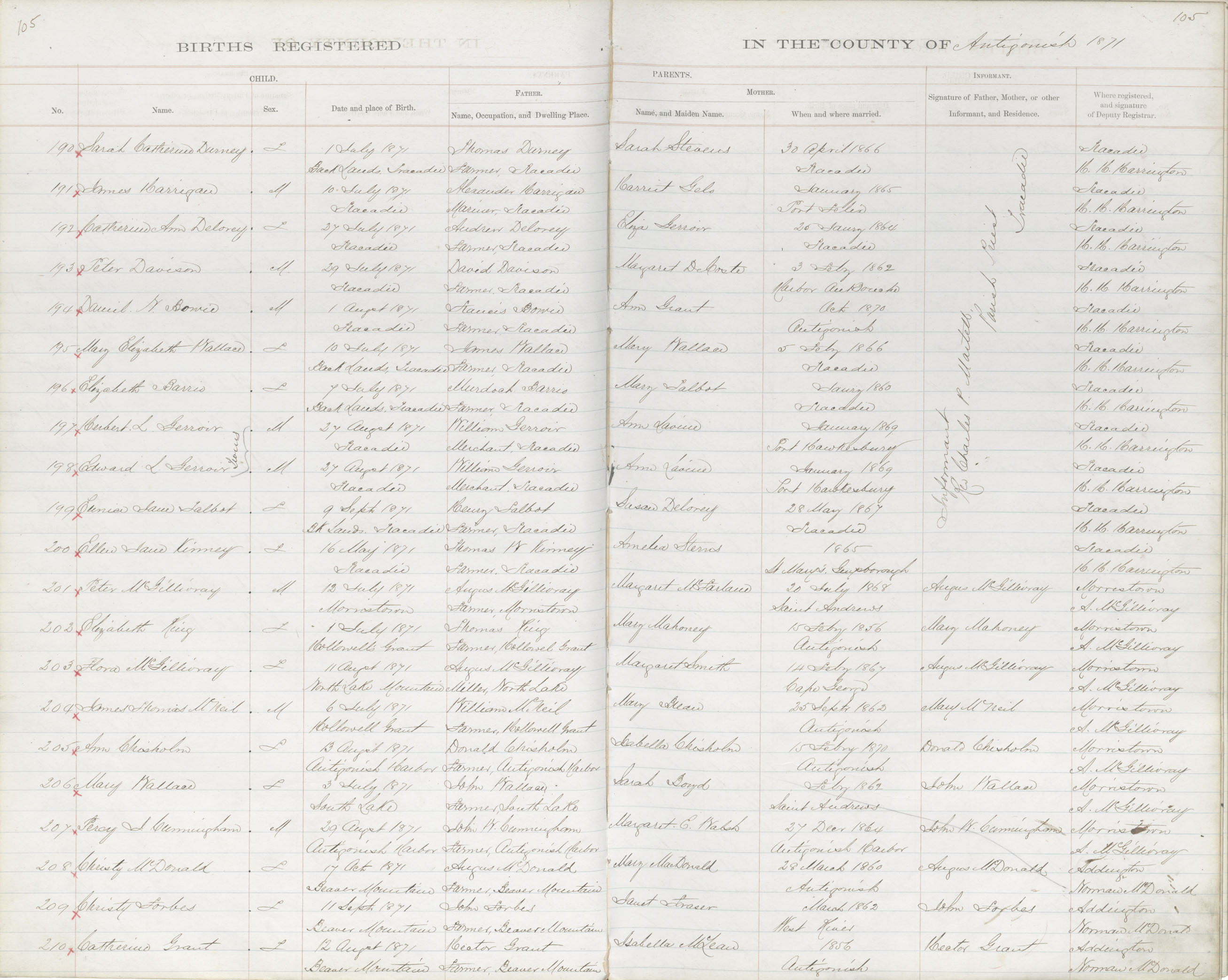 Birth Registration: Year: 1871 book: 1802 page: 105 number: 190