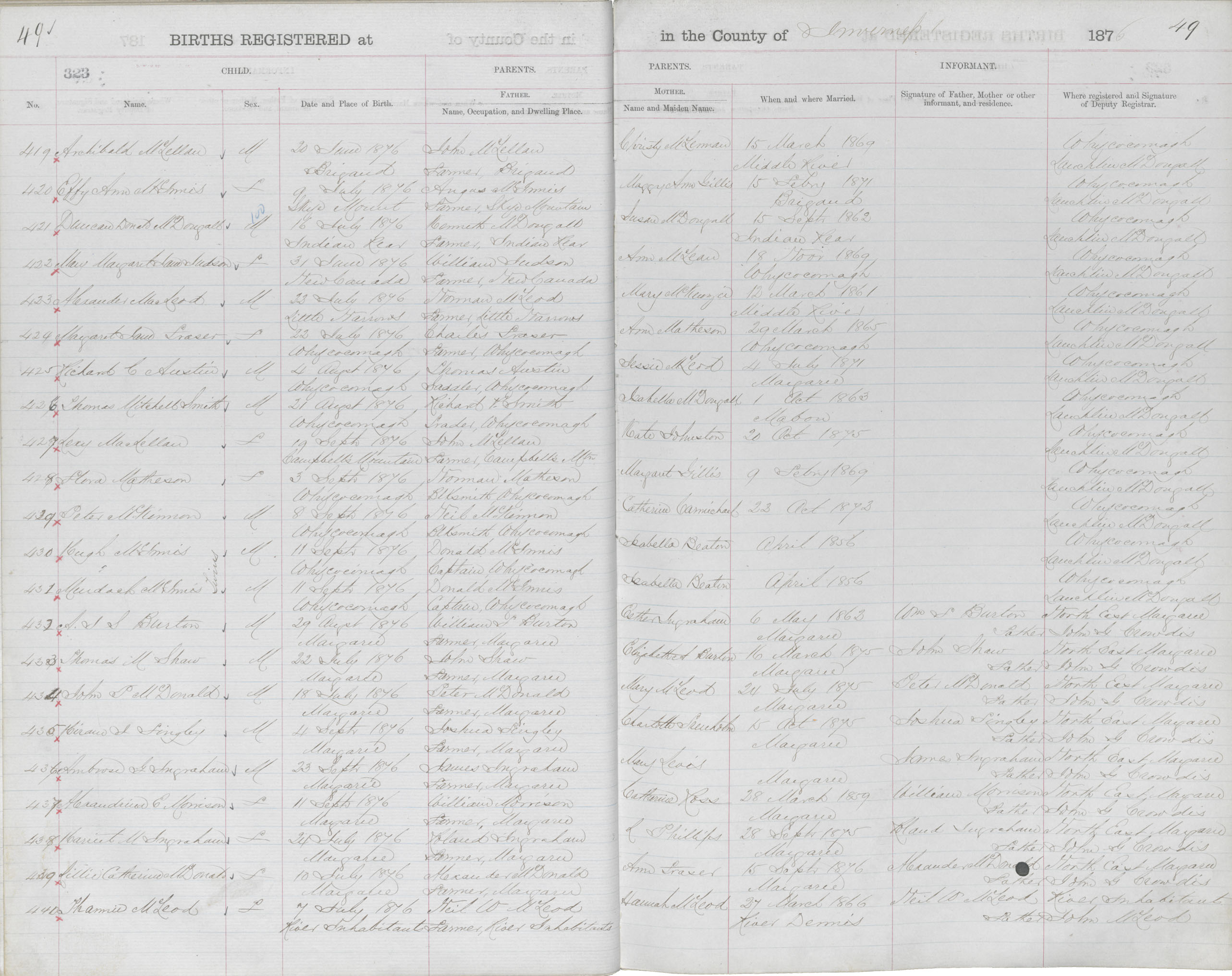 Female Birth Registration: Year: 1876 book: 1815 page: 49 number: 439