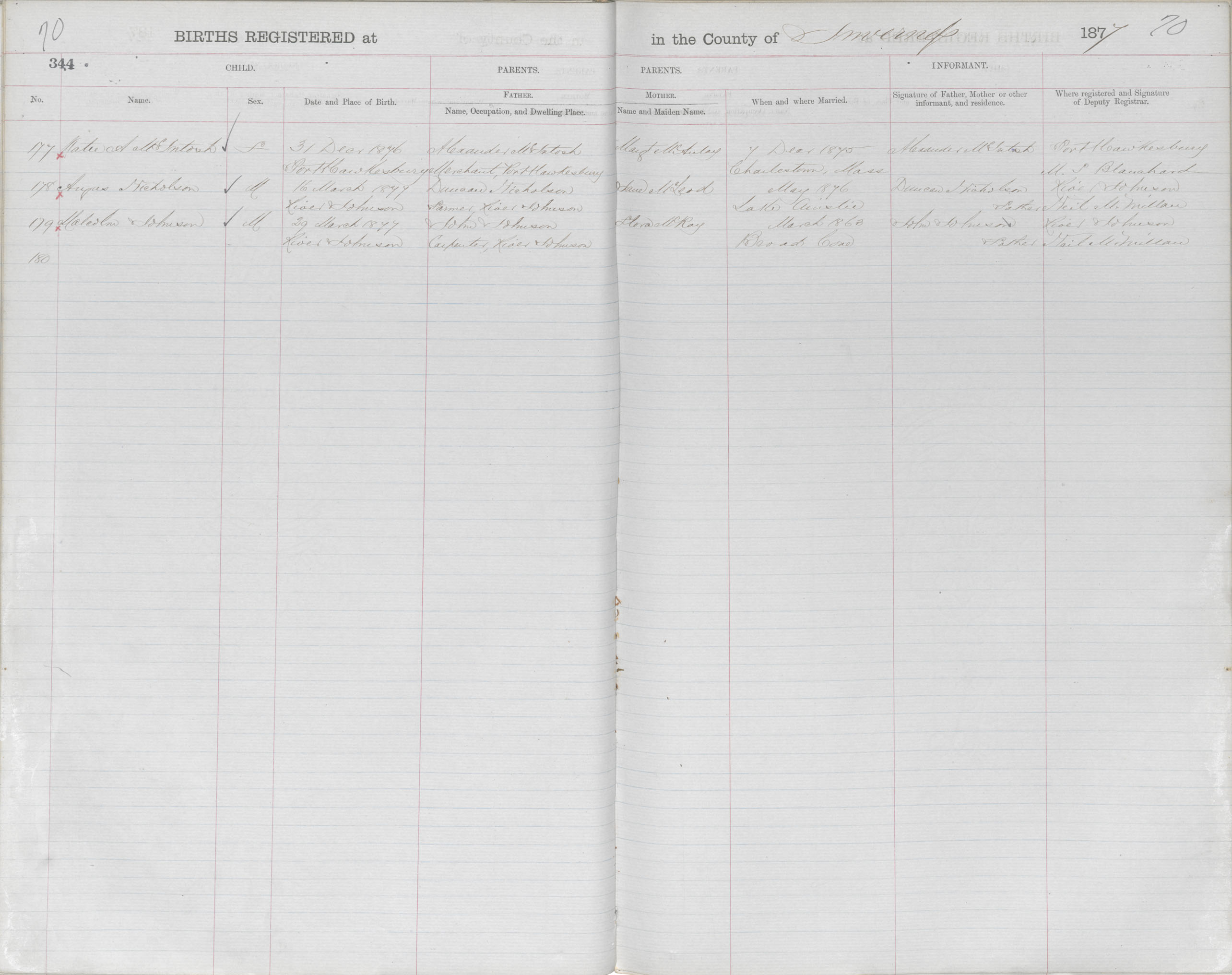 Female Birth Registration: Year: 1877 book: 1815 page: 70 number: 177
