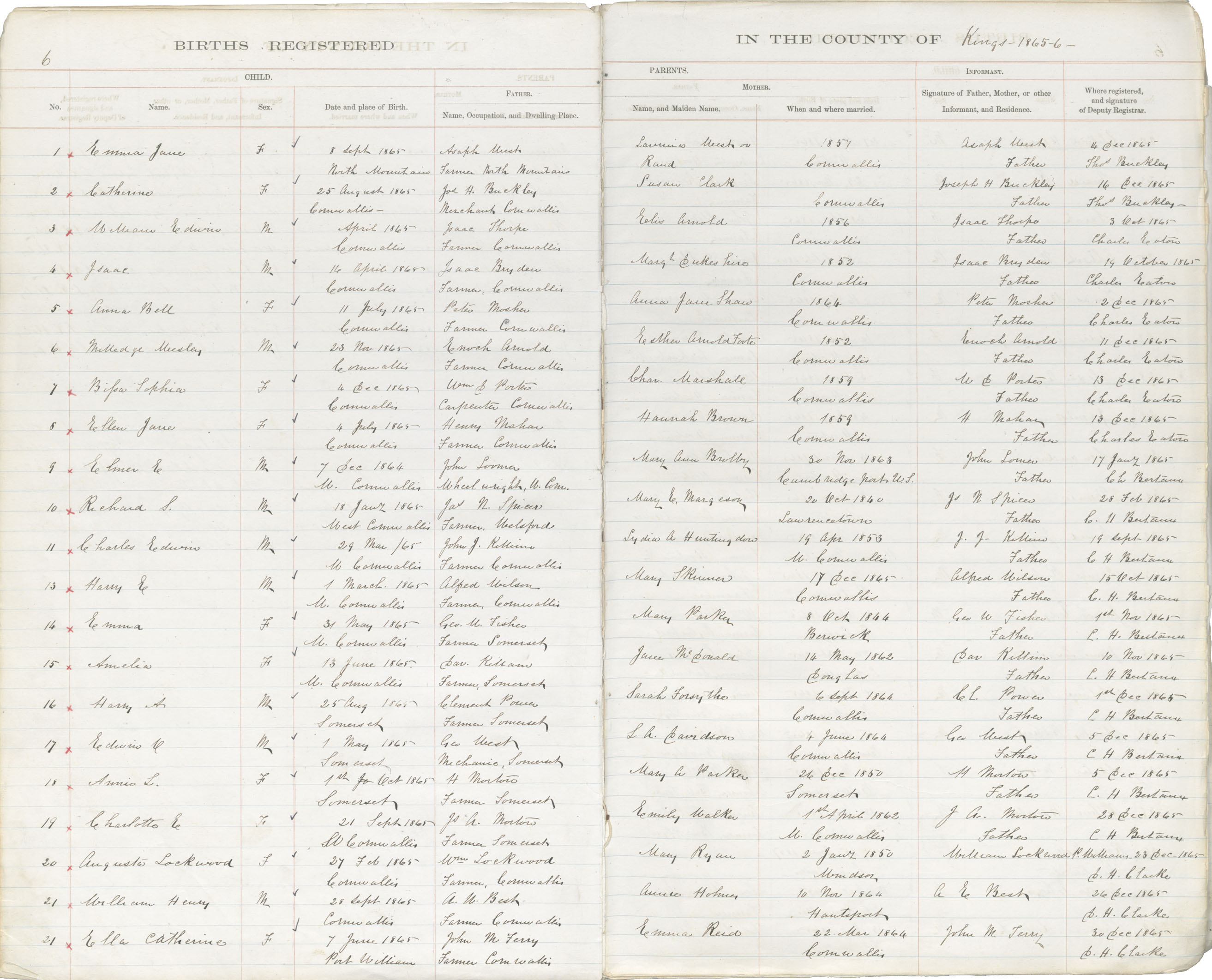 Birth Registration: Year: 1866 book: 1816 page: 6 number: 1