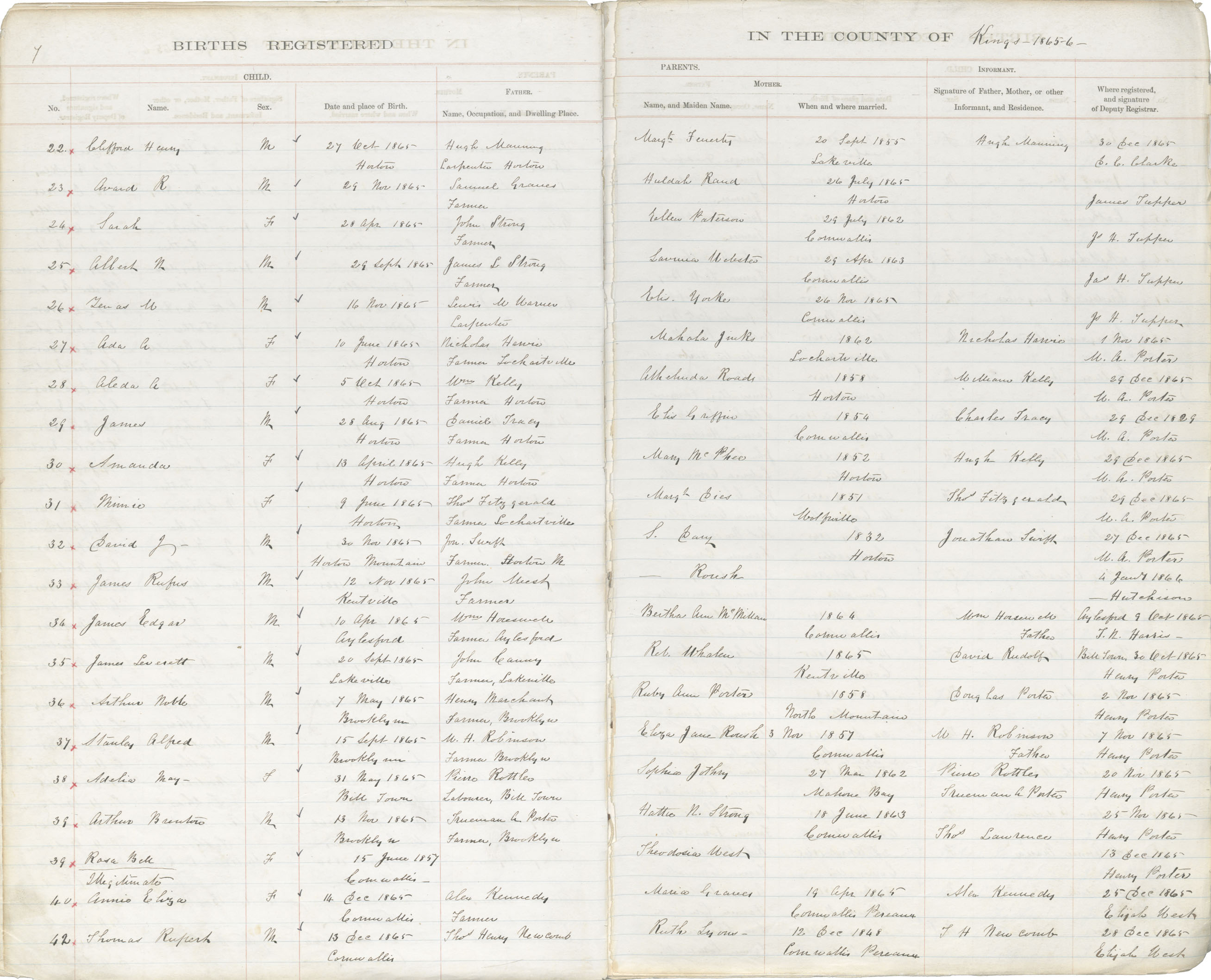 Birth Registration: Year: 1866 book: 1816 page: 7 number: 22