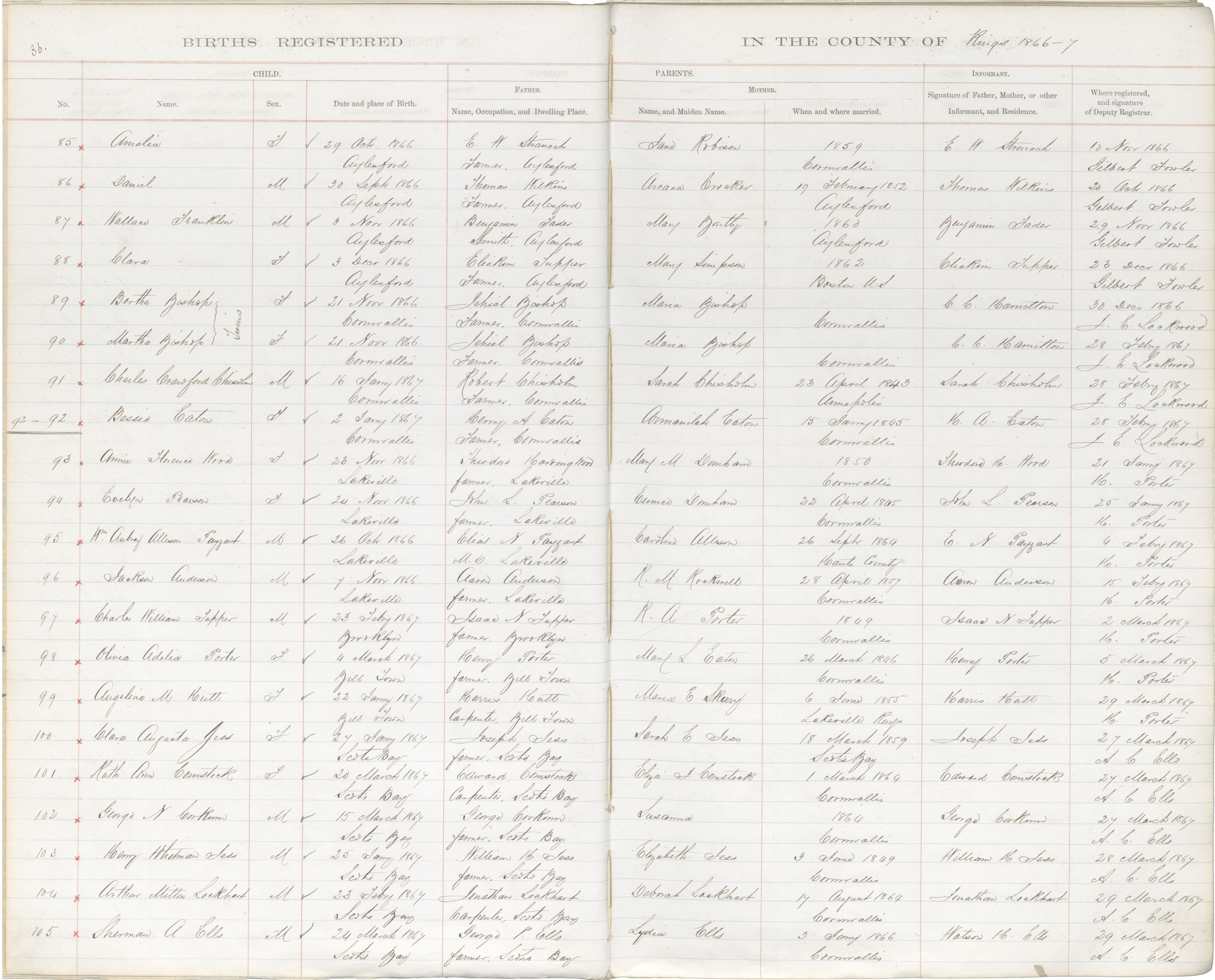 Birth Registration: Year: 1867 book: 1816 page: 36 number: 105