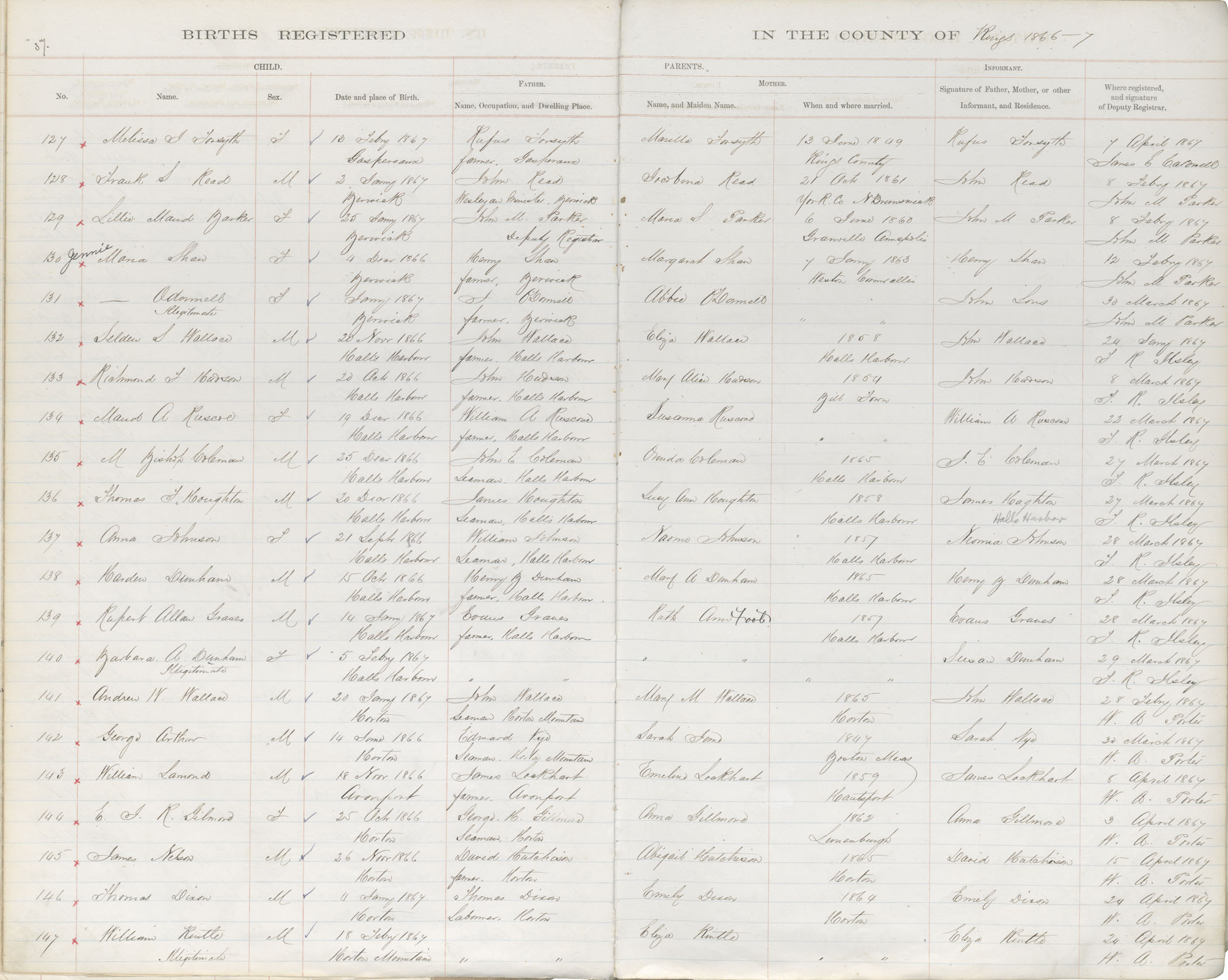 Birth Registration: Year: 1867 book: 1816 page: 37 number: 147