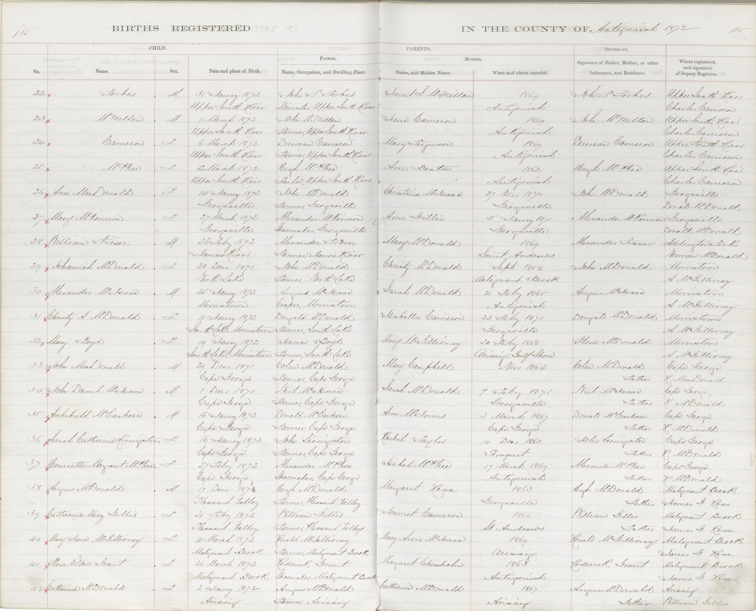 Birth Registration: Year: 1872 book: 1802 page: 115 number: 42