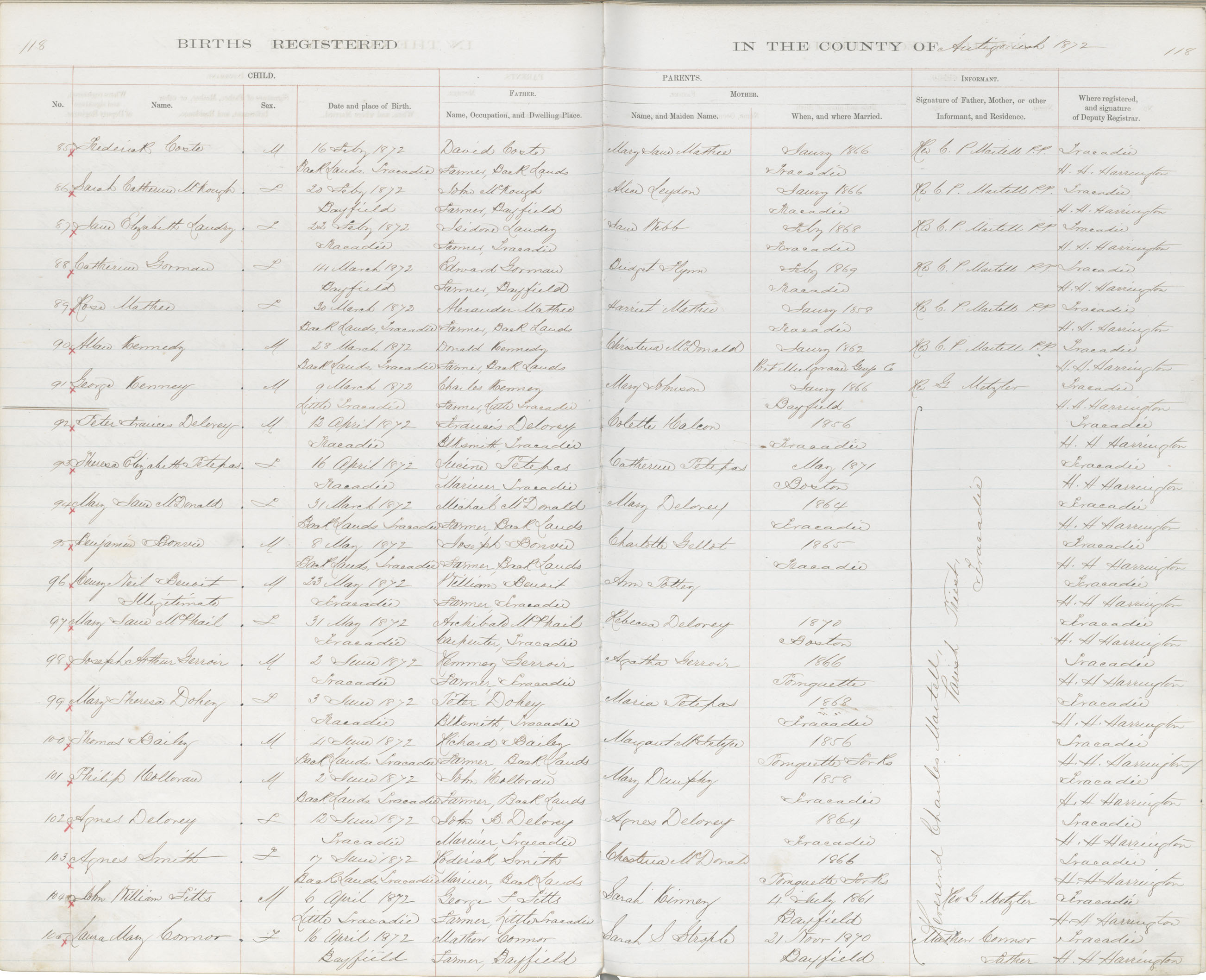 Birth Registration: Year: 1872 book: 1802 page: 118 number: 85