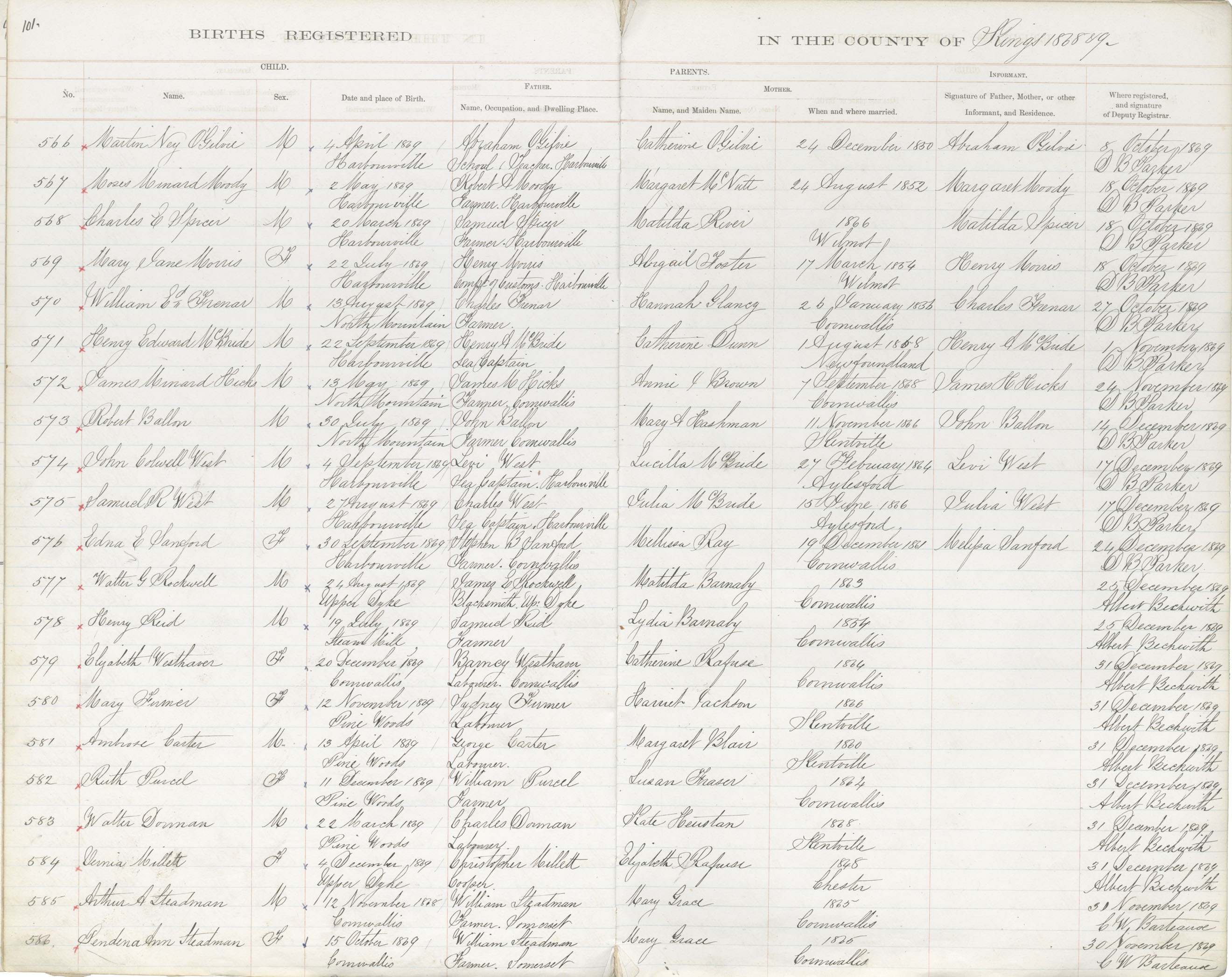 Birth Registration: Year: 1869 book: 1816 page: 101 number: 586