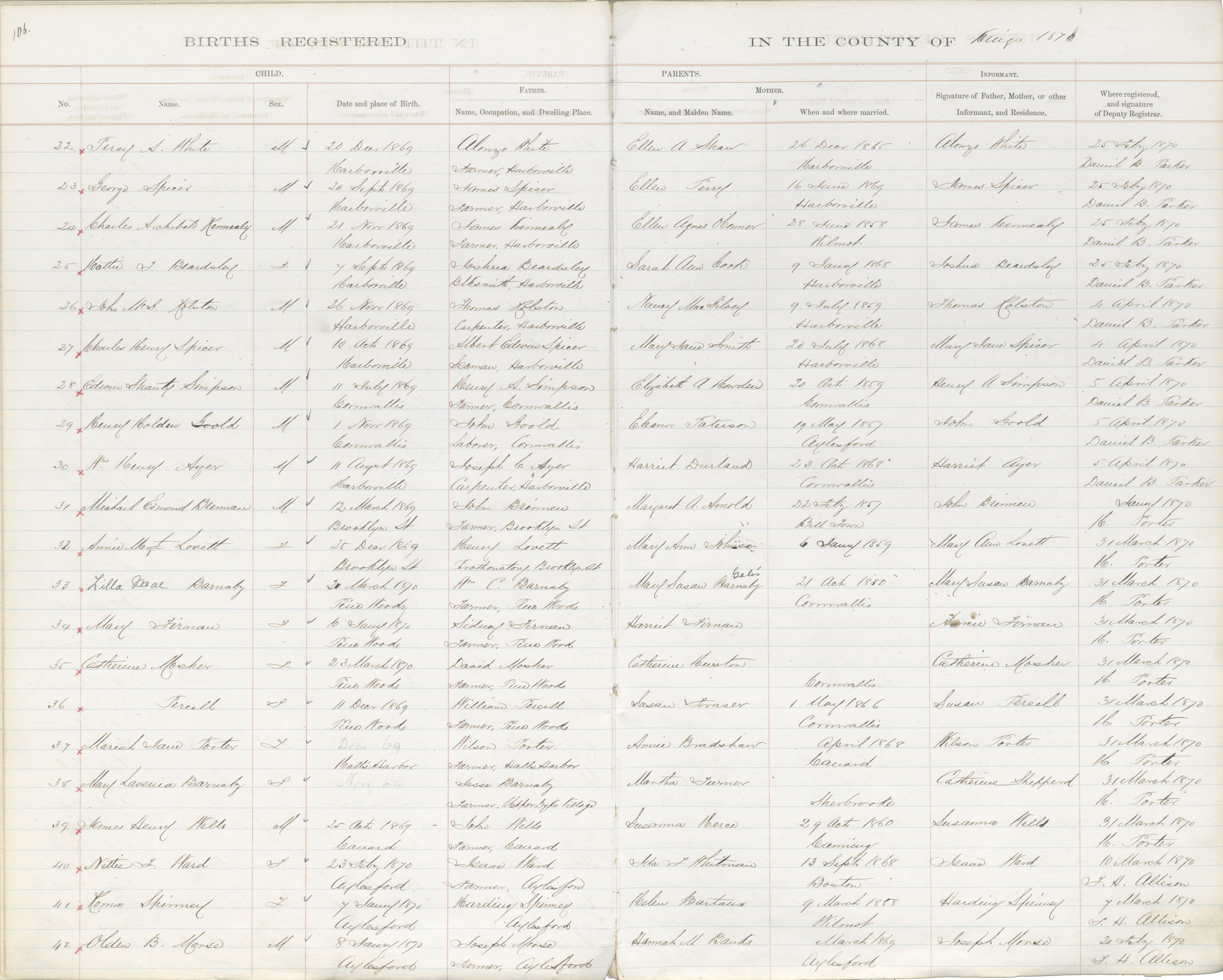 Birth Registration: Year: 1869 book: 1816 page: 106 number: 28