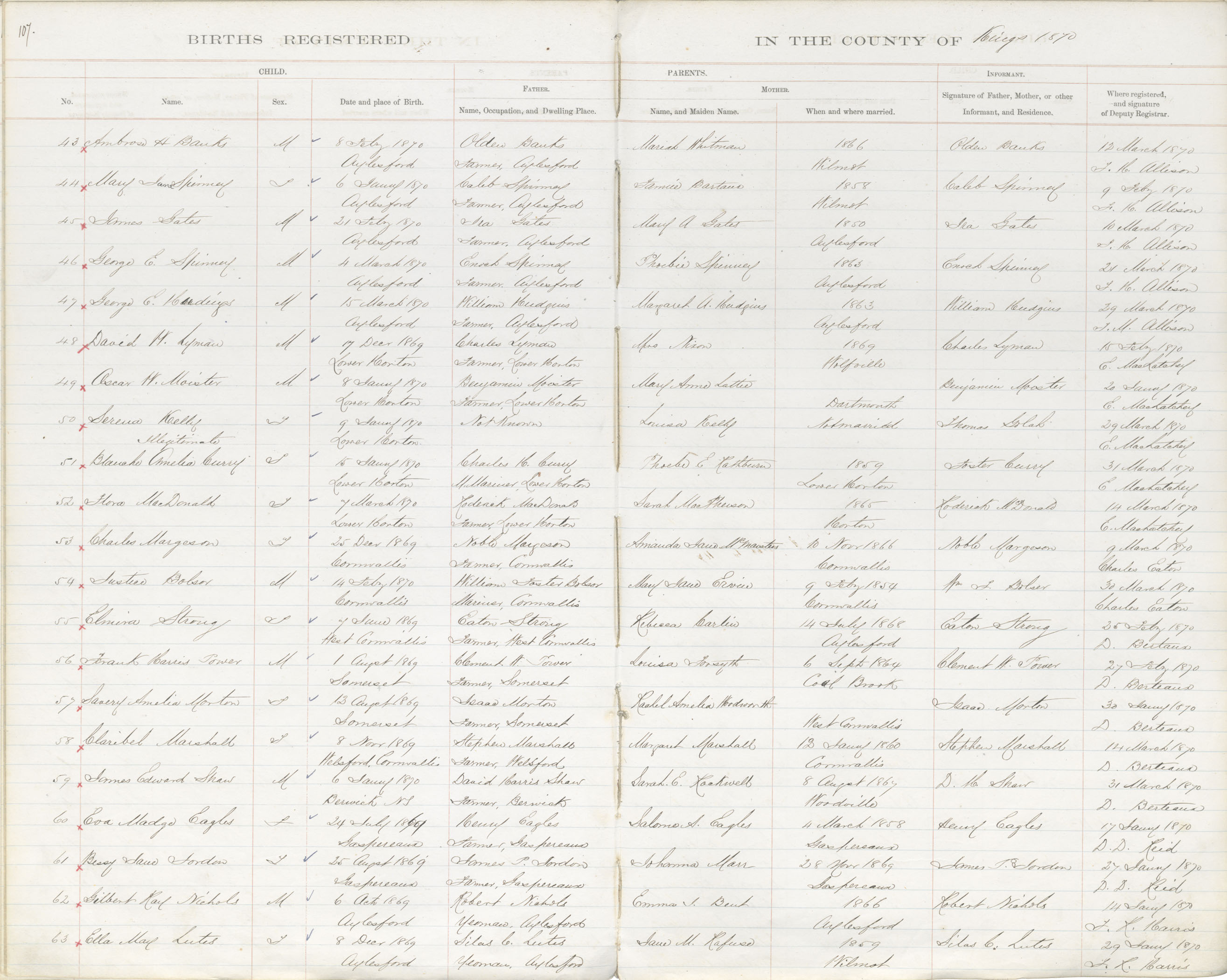 Birth Registration: Year: 1870 book: 1816 page: 107 number: 52