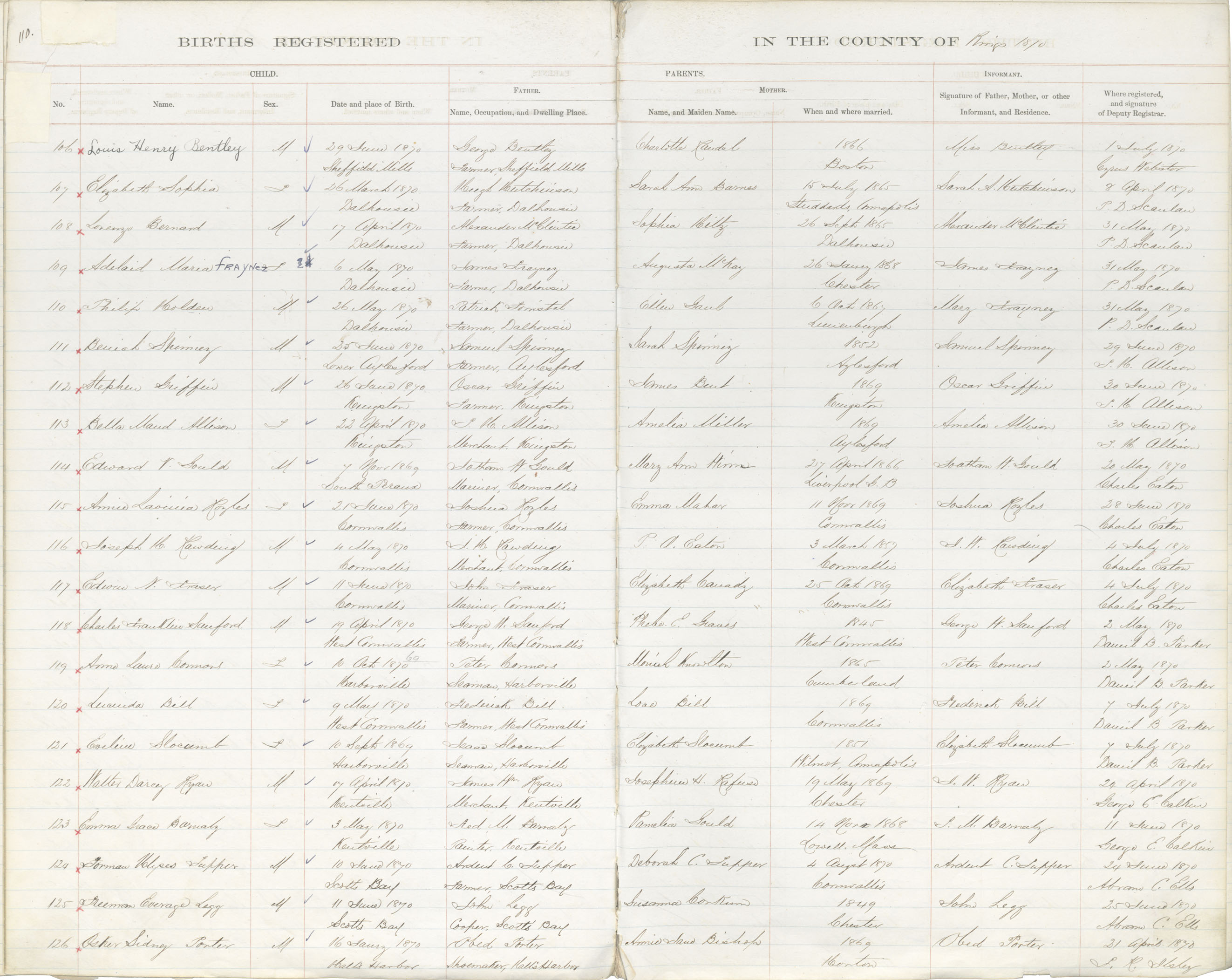 Birth Registration: Year: 1870 book: 1816 page: 110 number: 124