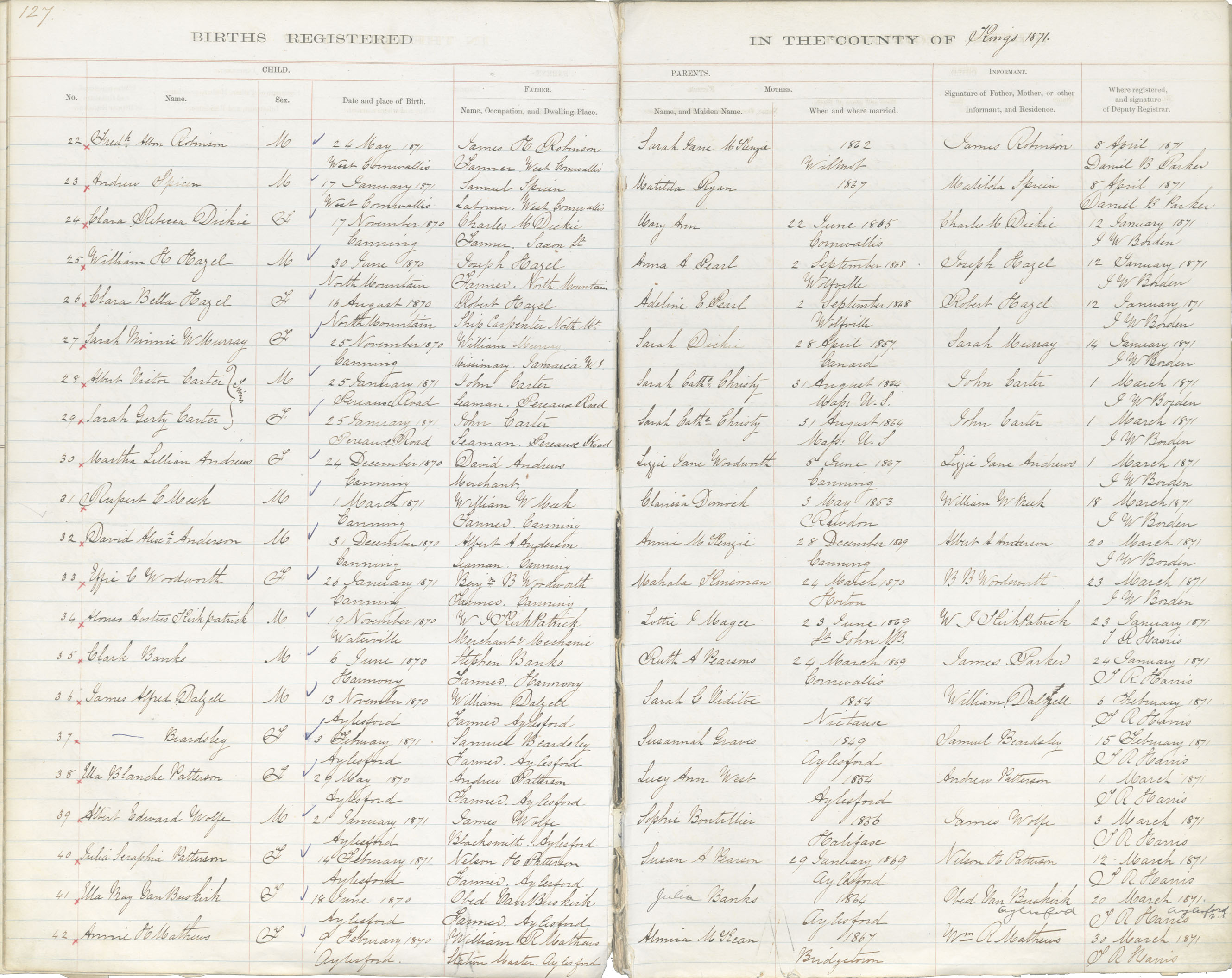 Birth Registration: Year: 1871 book: 1816 page: 127 number: 22
