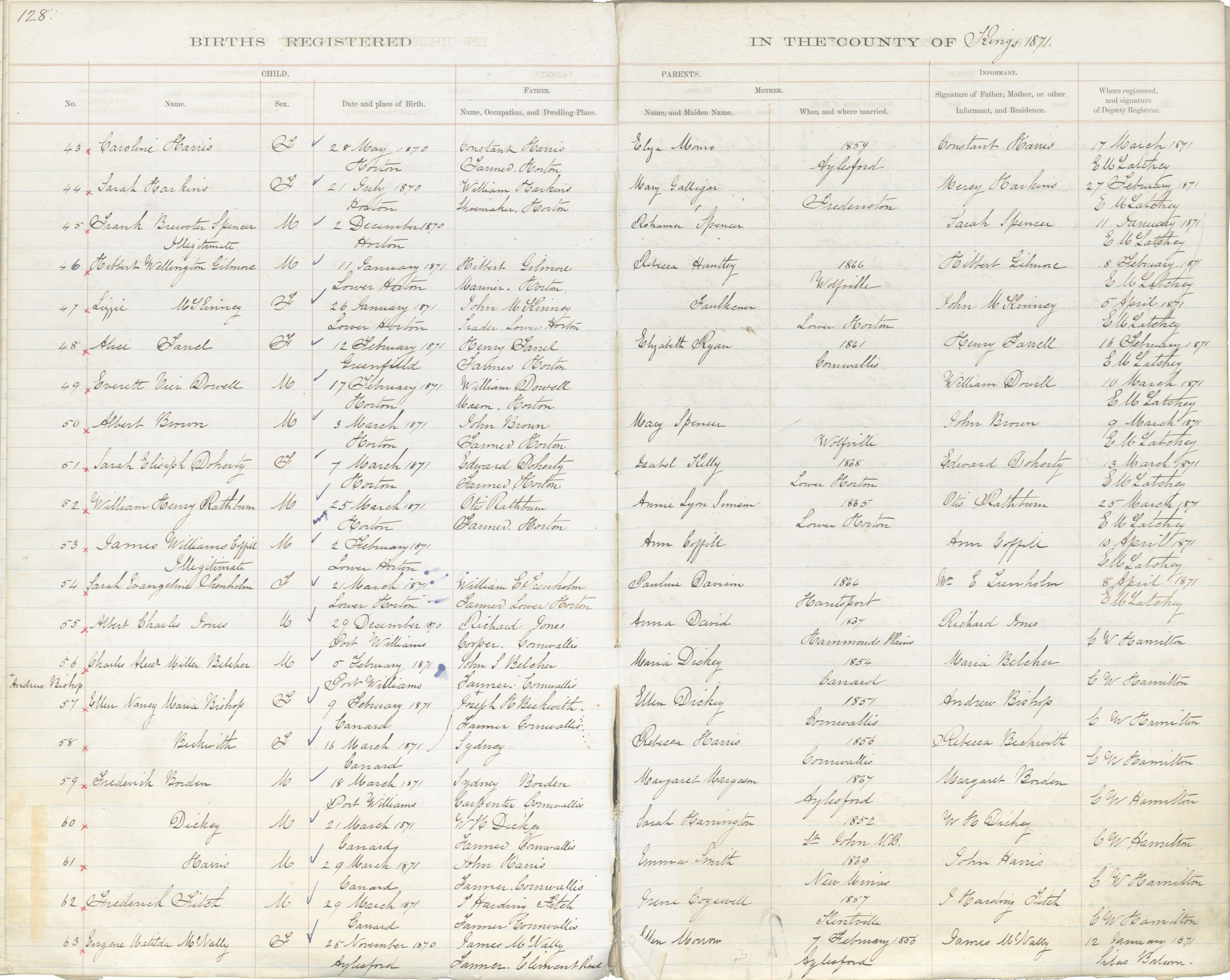Birth Registration: Year: 1870 book: 1816 page: 128 number: 43