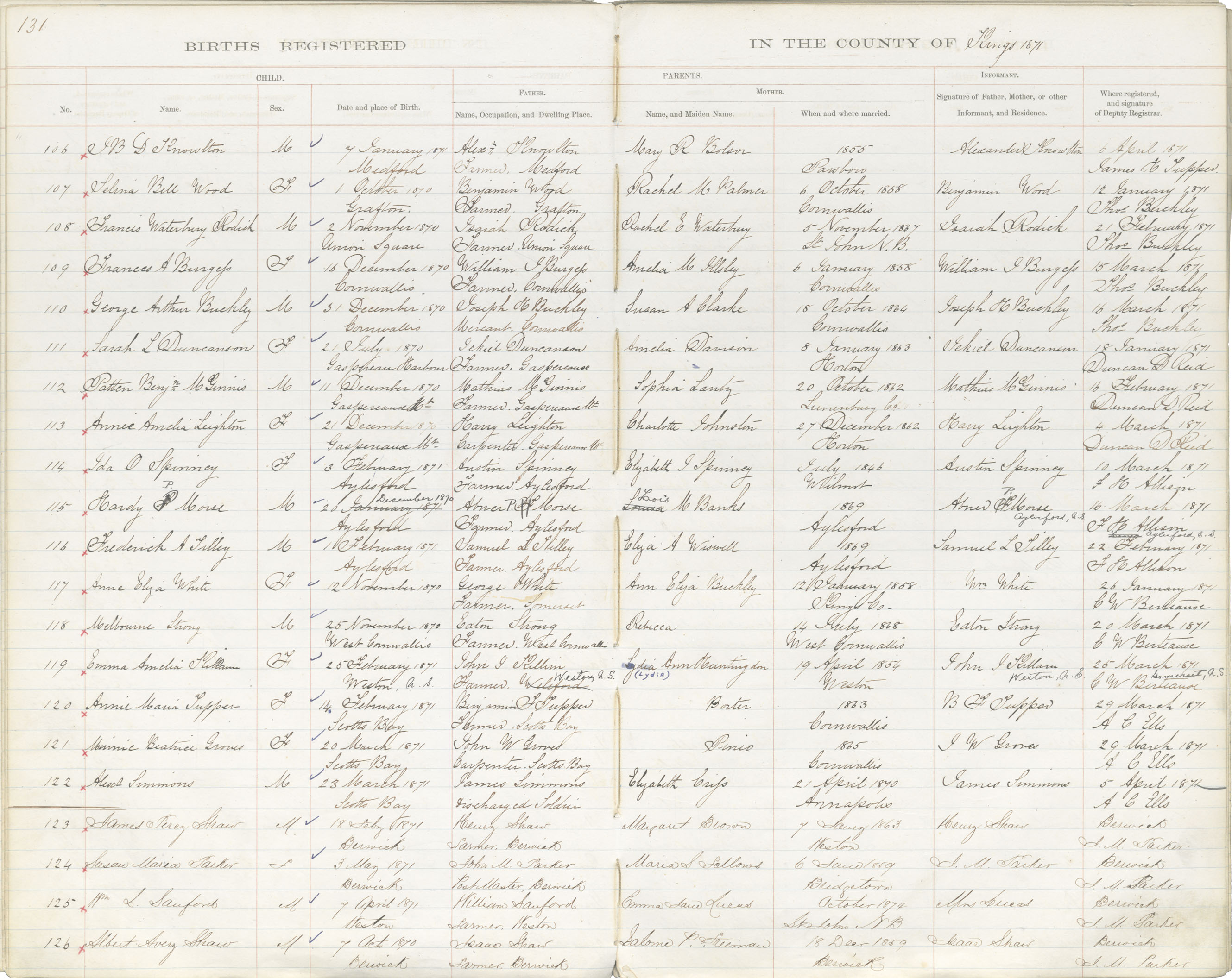 Birth Registration: Year: 1871 book: 1816 page: 131 number: 106