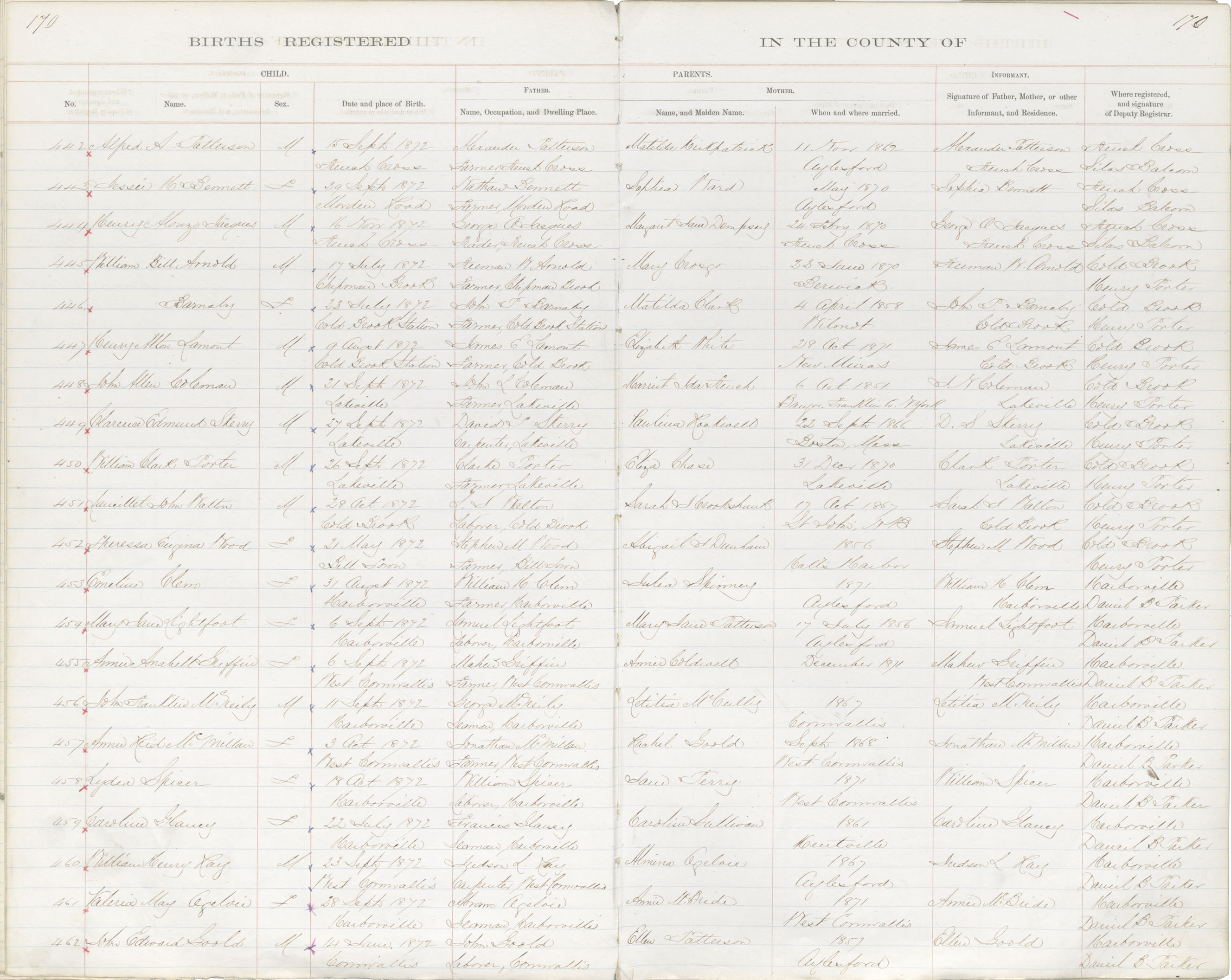 Male Birth Registration: Year: 1872 book: 1816 page: 170 number: 442