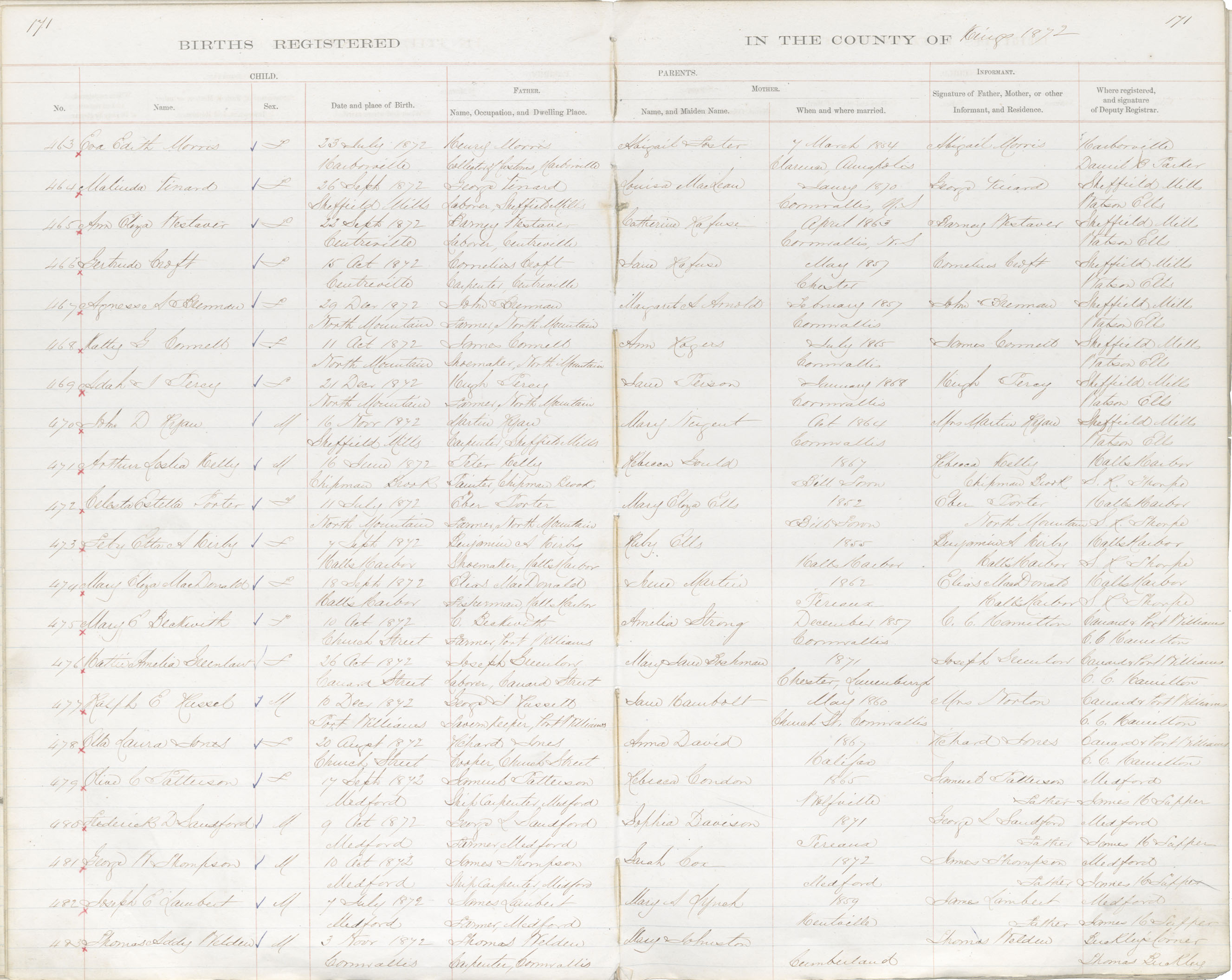 Birth Registration: Year: 1872 book: 1816 page: 171 number: 482