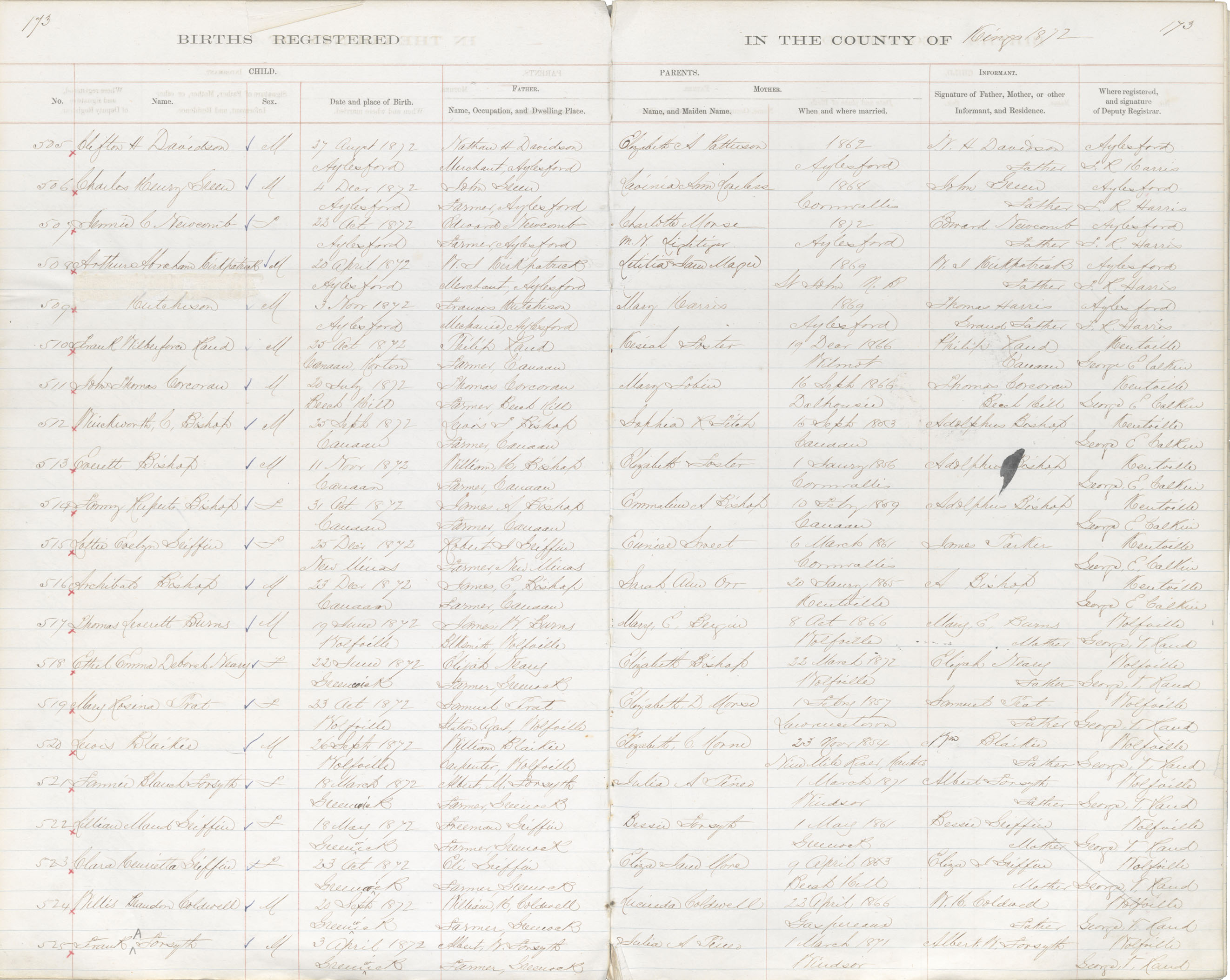 Birth Registration: Year: 1872 book: 1816 page: 173 number: 509