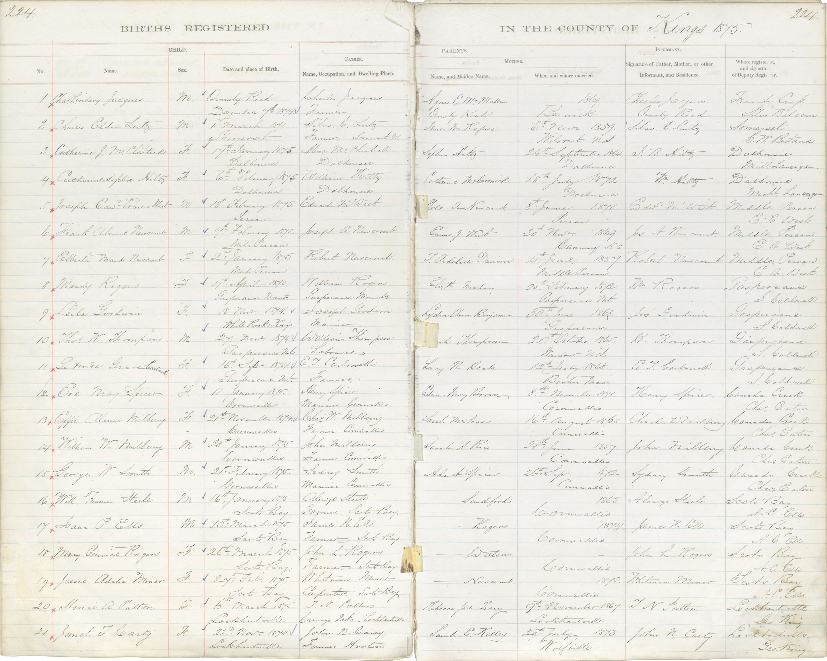 Birth Registration: Year: 1875 book: 1816 page: 224 number: 1