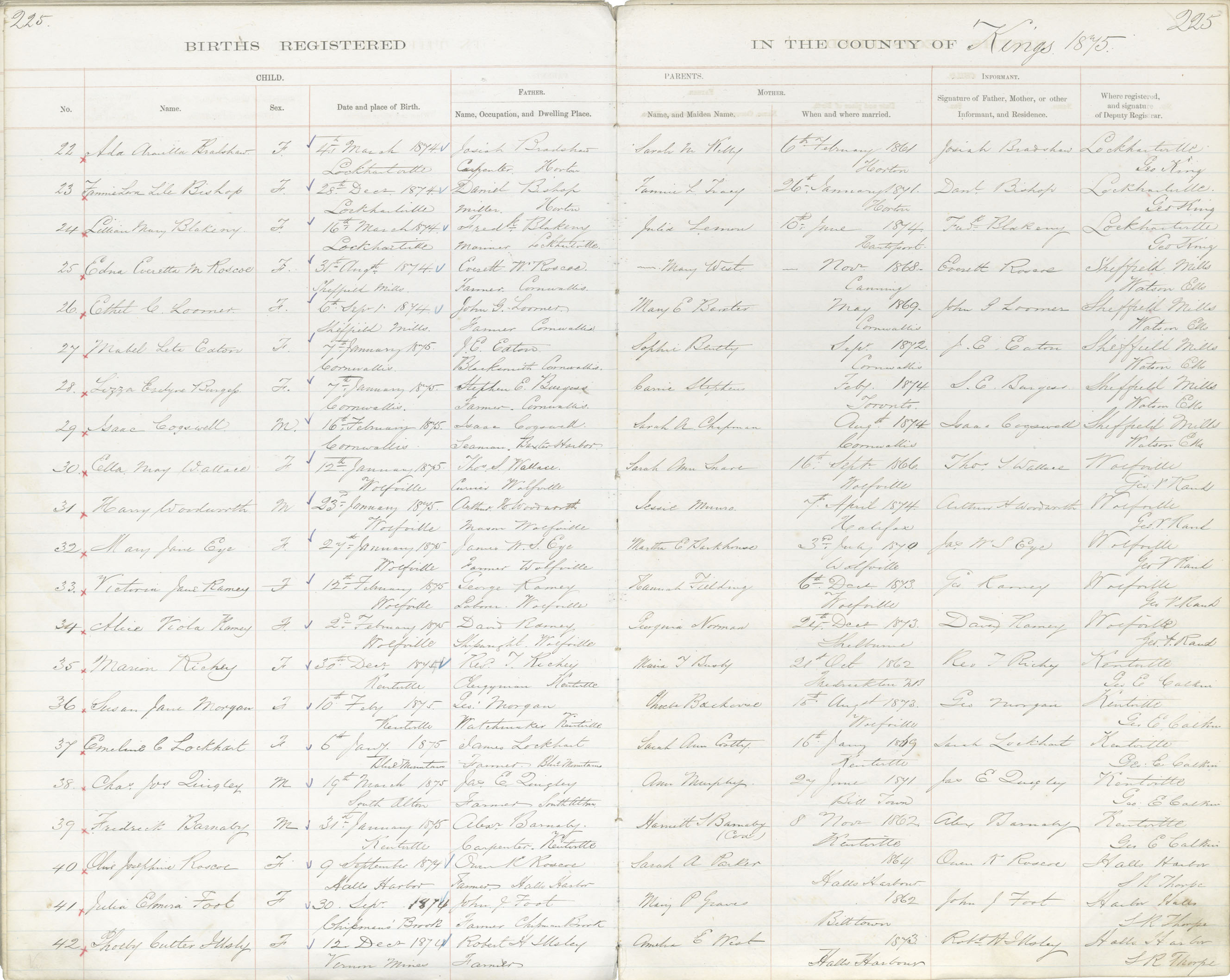 Birth Registration: Year: 1875 book: 1816 page: 225 number: 22