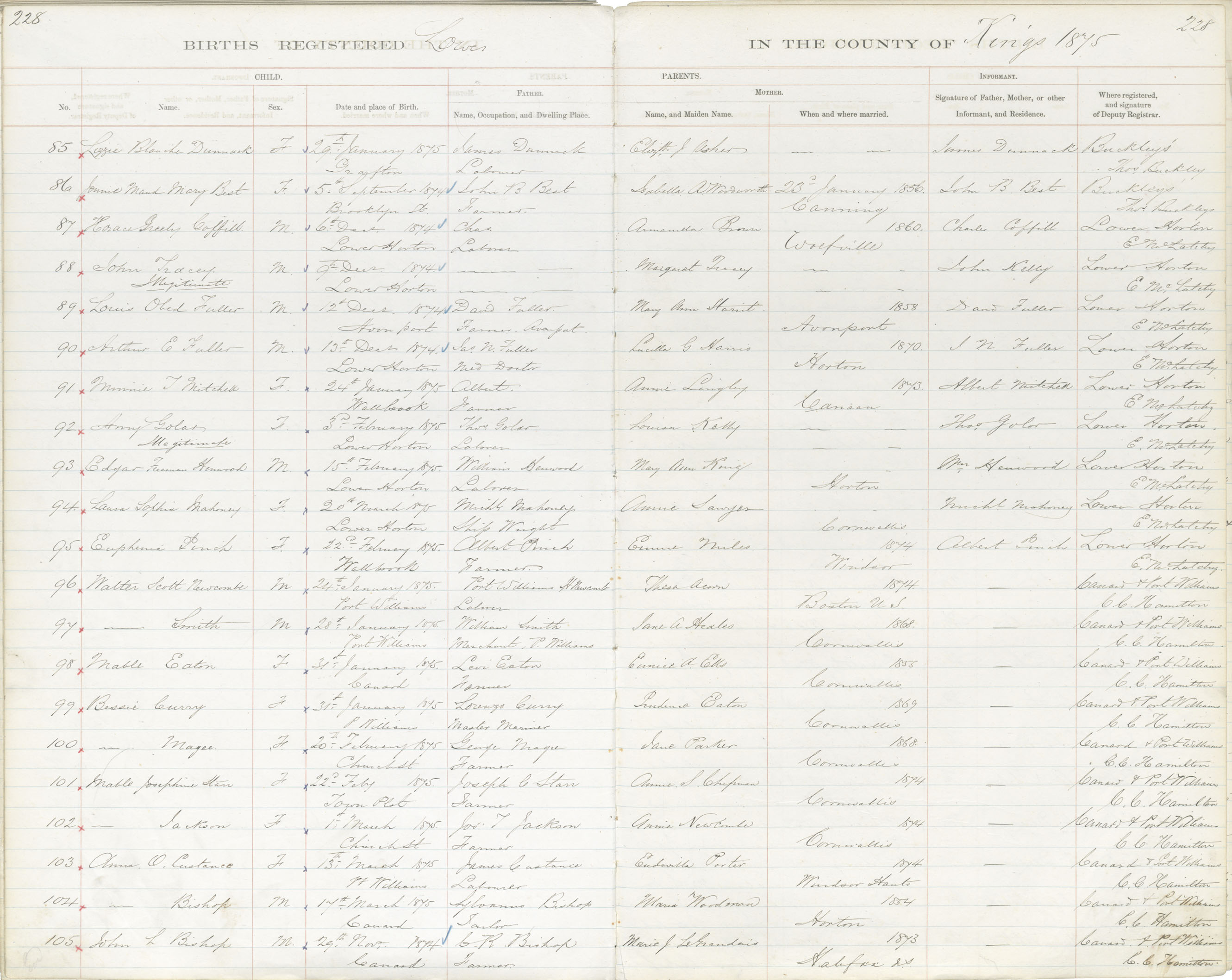 Birth Registration: Year: 1875 book: 1816 page: 228 number: 85