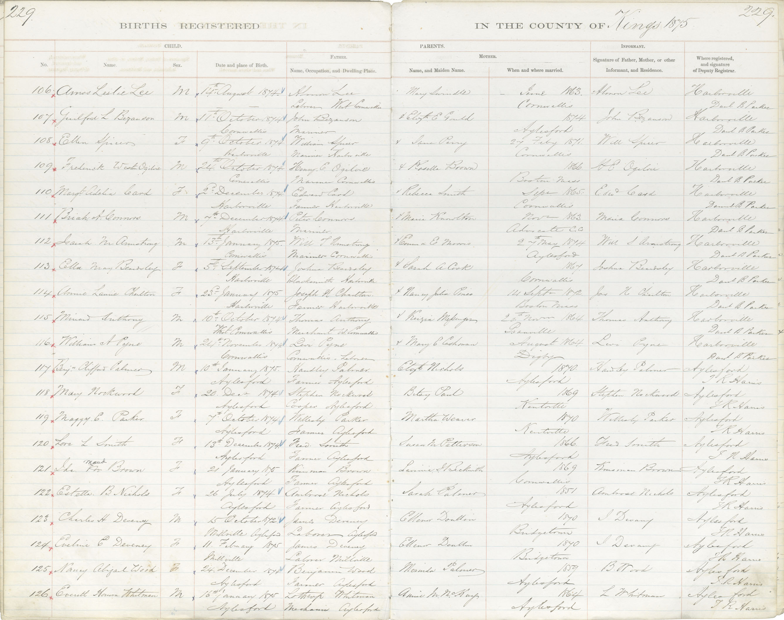Male Birth Registration: Year: 1875 book: 1816 page: 229 number: 106