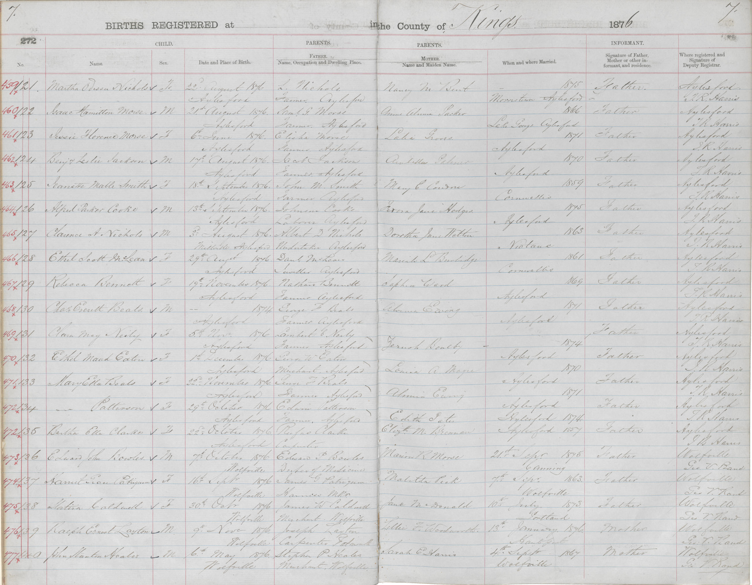 Birth Registration: Year: 1876 book: 1816 page: 272 number: 477