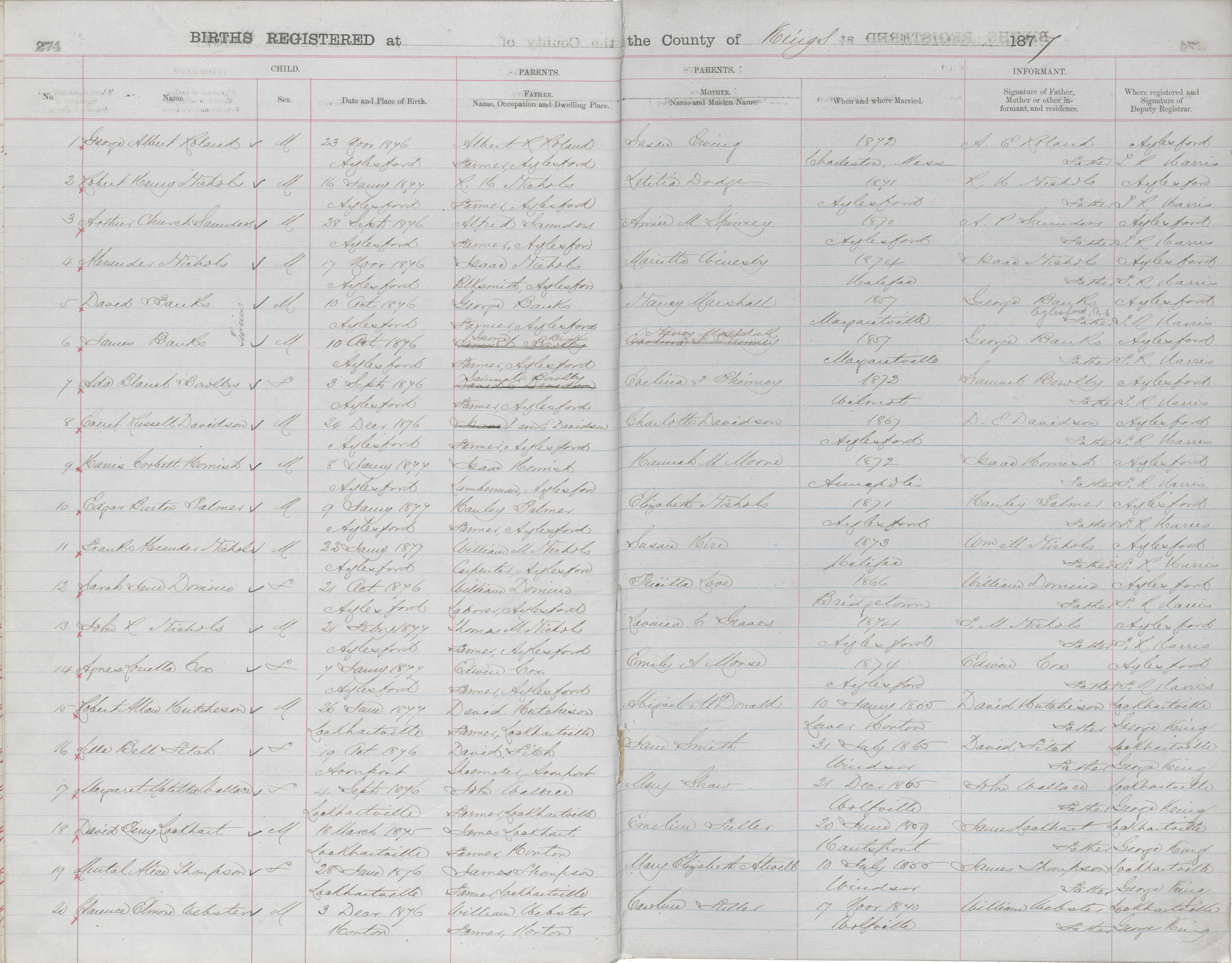 Birth Registration: Year: 1877 book: 1816 page: 274 number: 20