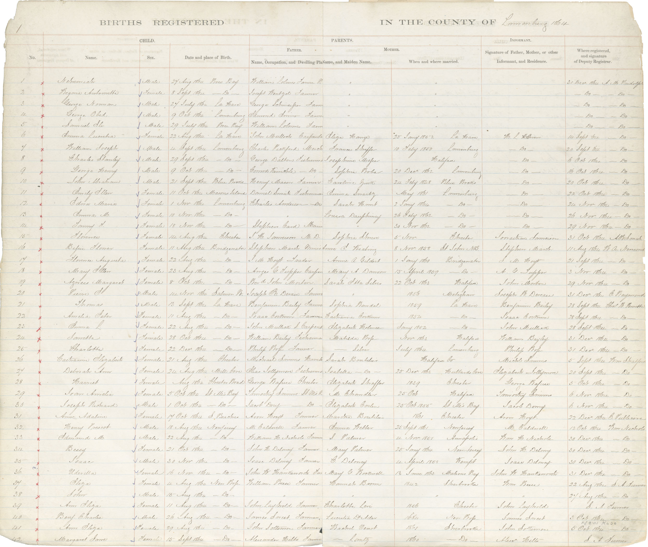 Female Birth Registration: Year: 1864 book: 1817 page: 1 number: 29