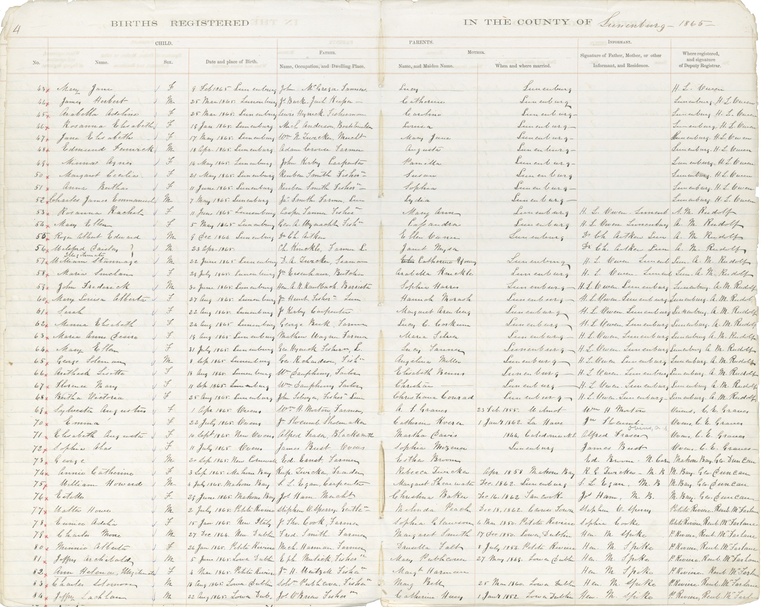 Birth Registration: Year: 1865 book: 1817 page: 4 number: 43