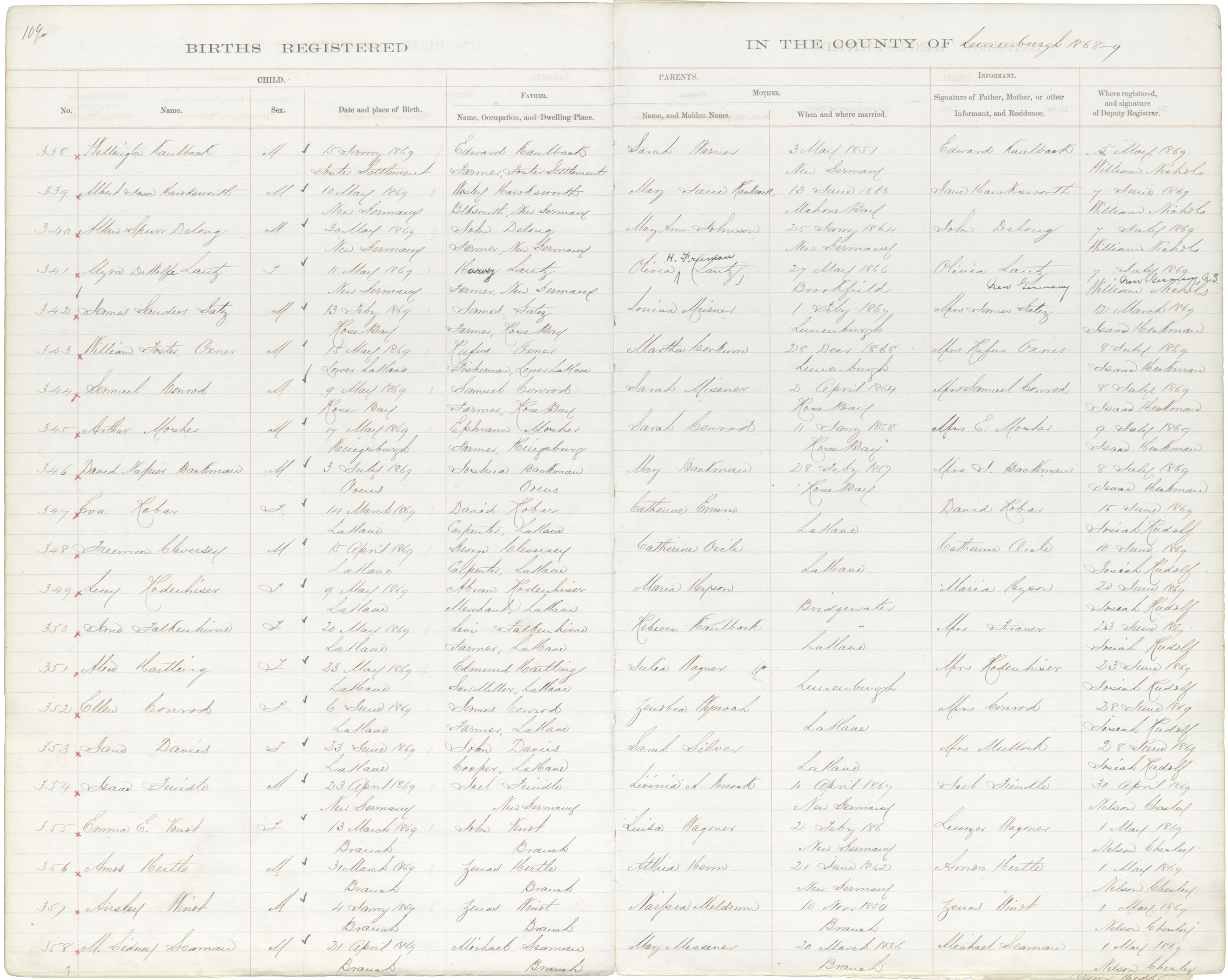 Male Birth Registration: Year: 1869 book: 1817 page: 109 number: 358