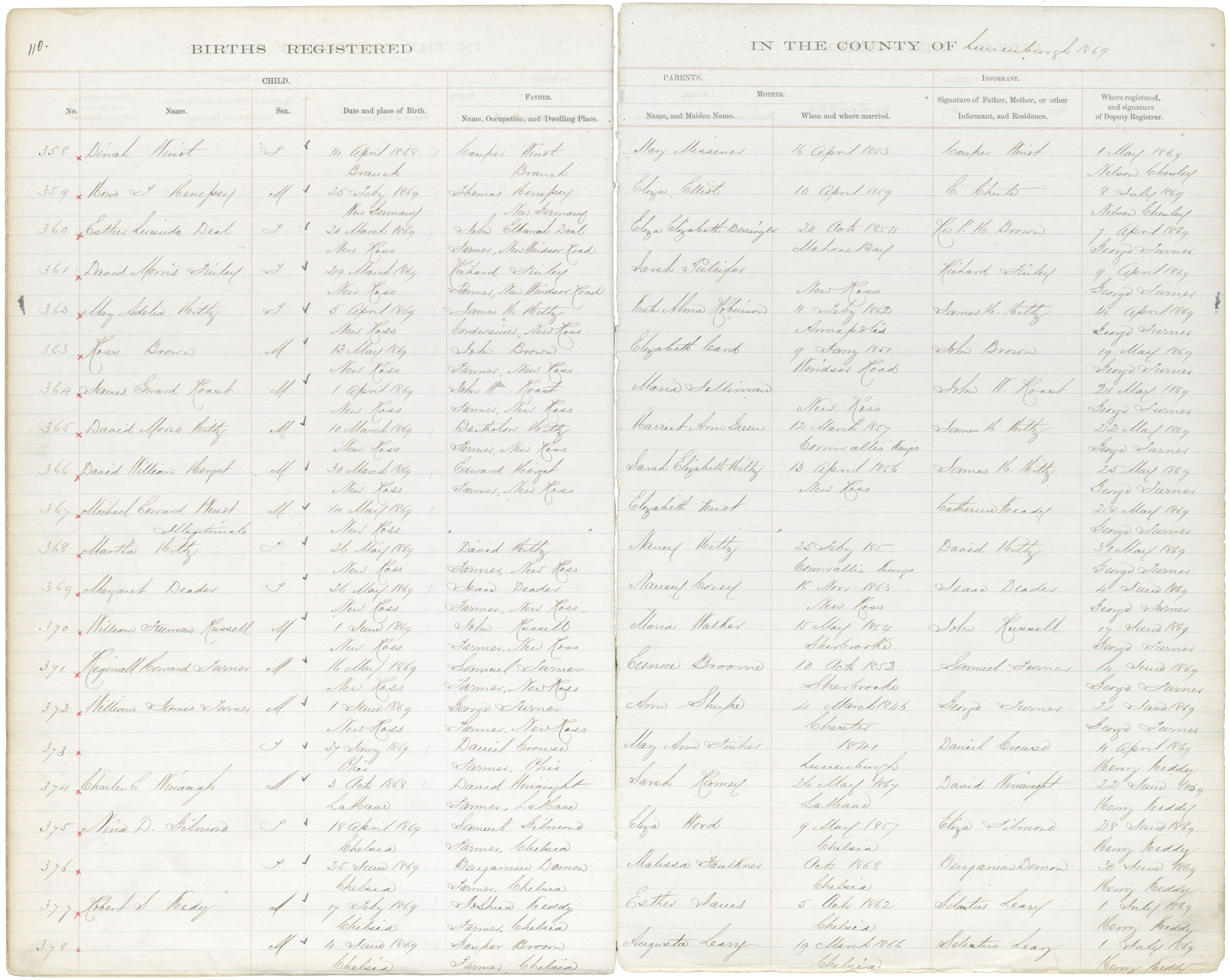 Male Birth Registration: Year: 1869 book: 1817 page: 110 number: 378