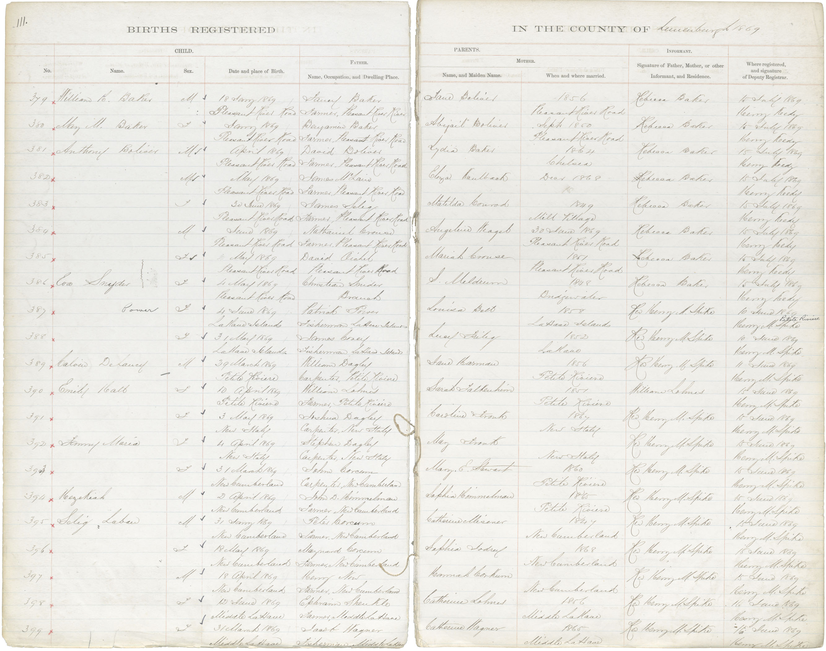 Female Birth Registration: Year: 1869 book: 1817 page: 111 number: 399