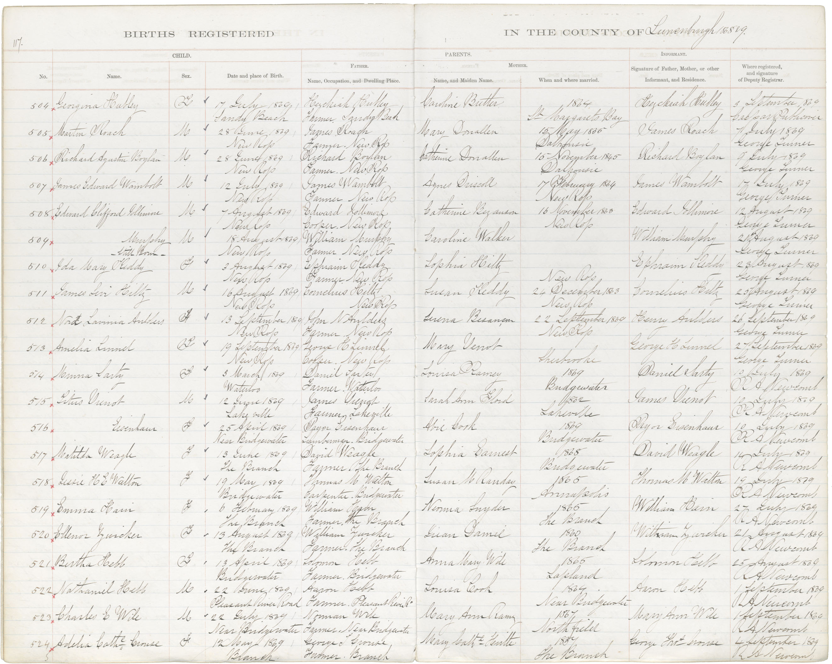 Birth Registration: Year: 1869 book: 1817 page: 117 number: 504