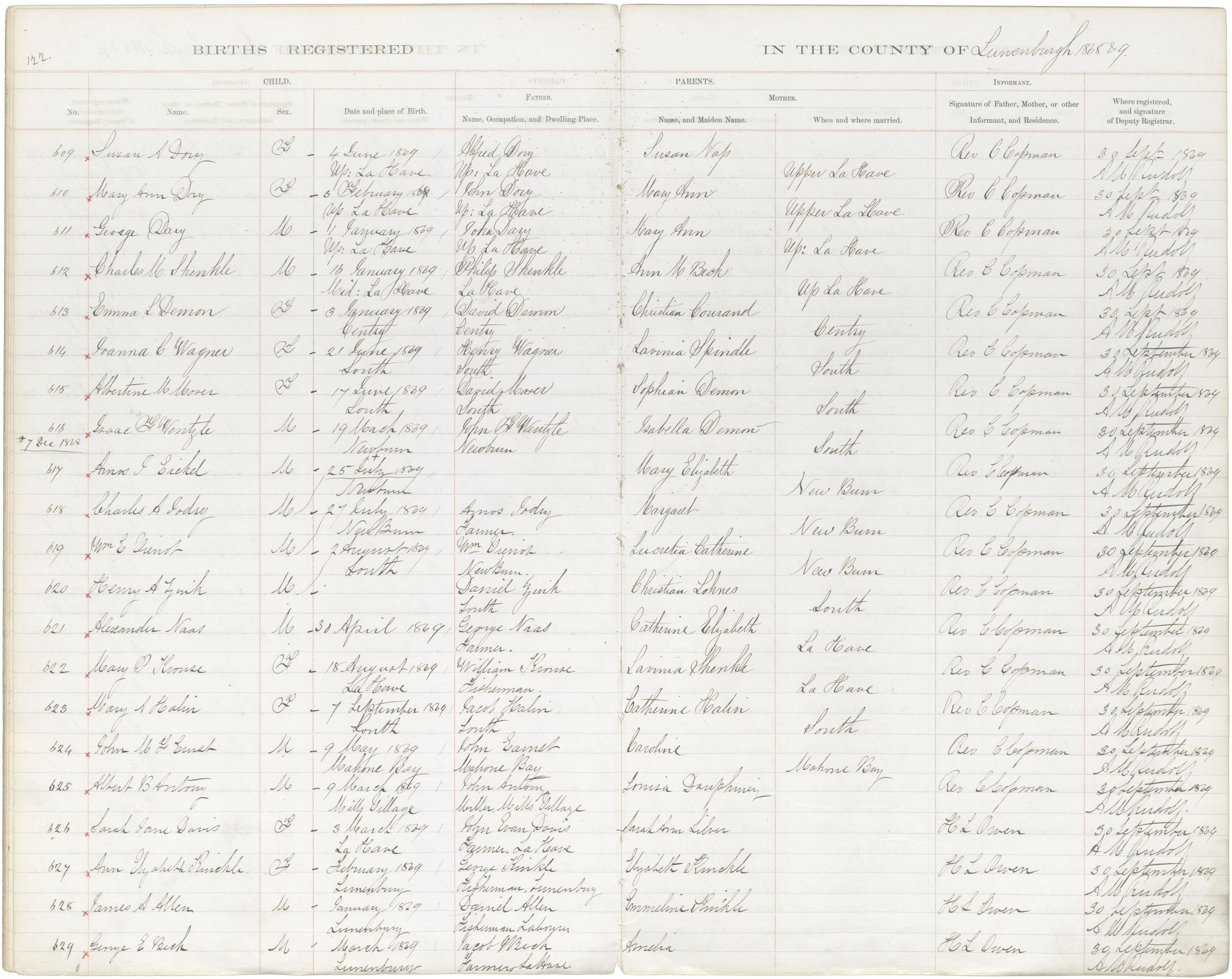 Birth Registration: Year: 1869 book: 1817 page: 122 number: 609