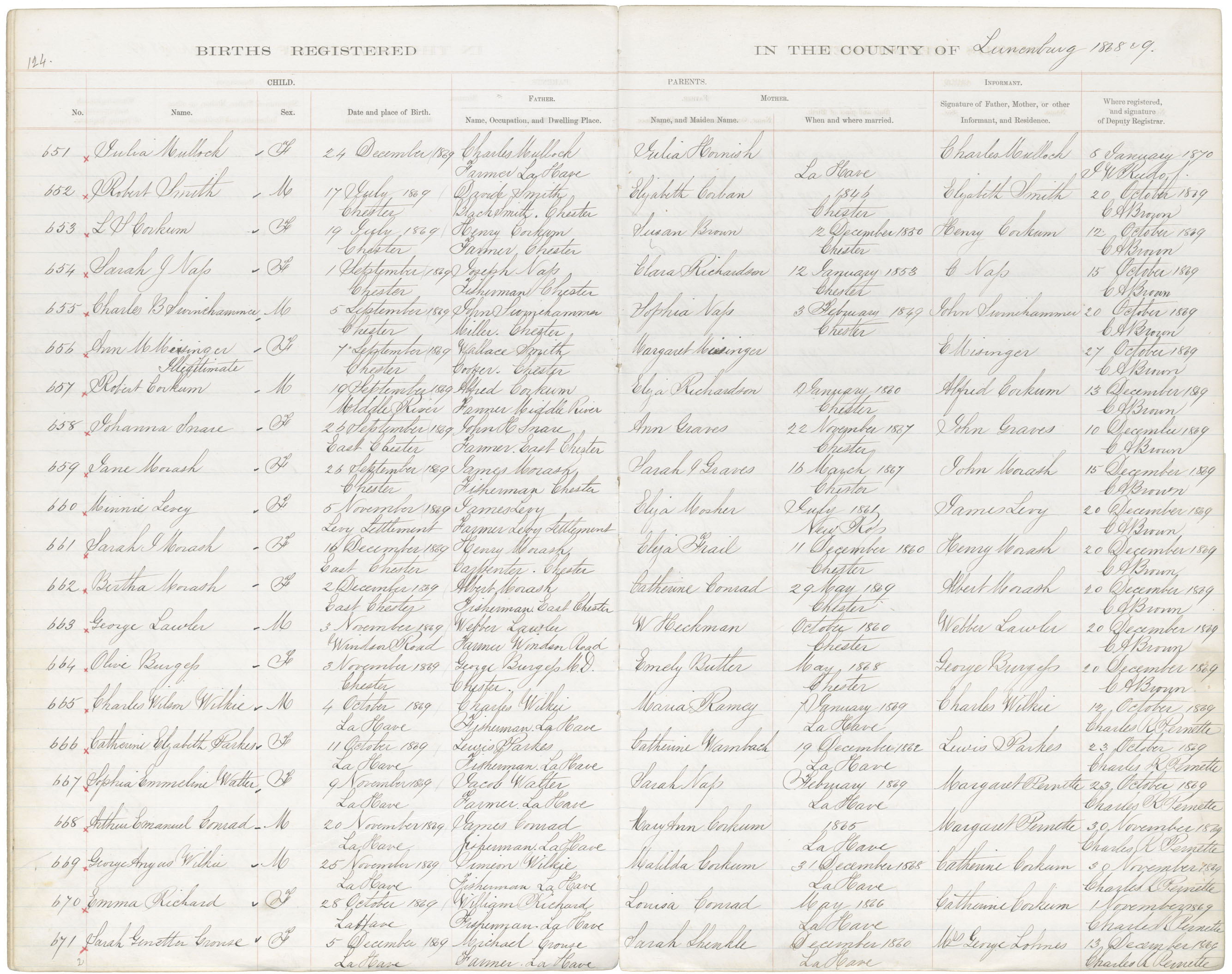 Female Birth Registration: Year: 1869 book: 1817 page: 124 number: 651