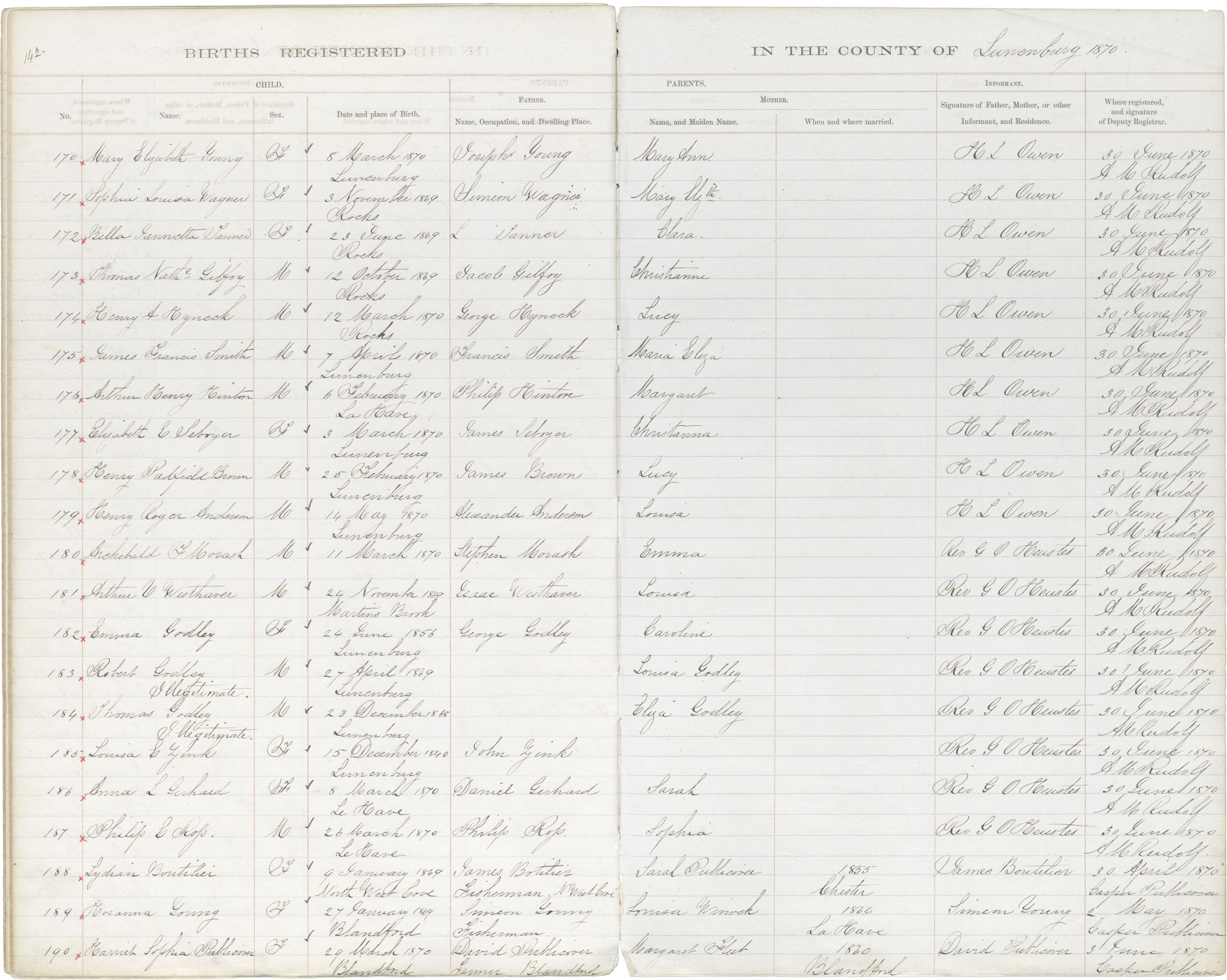 Birth Registration: Year: 1870 book: 1817 page: 142 number: 190