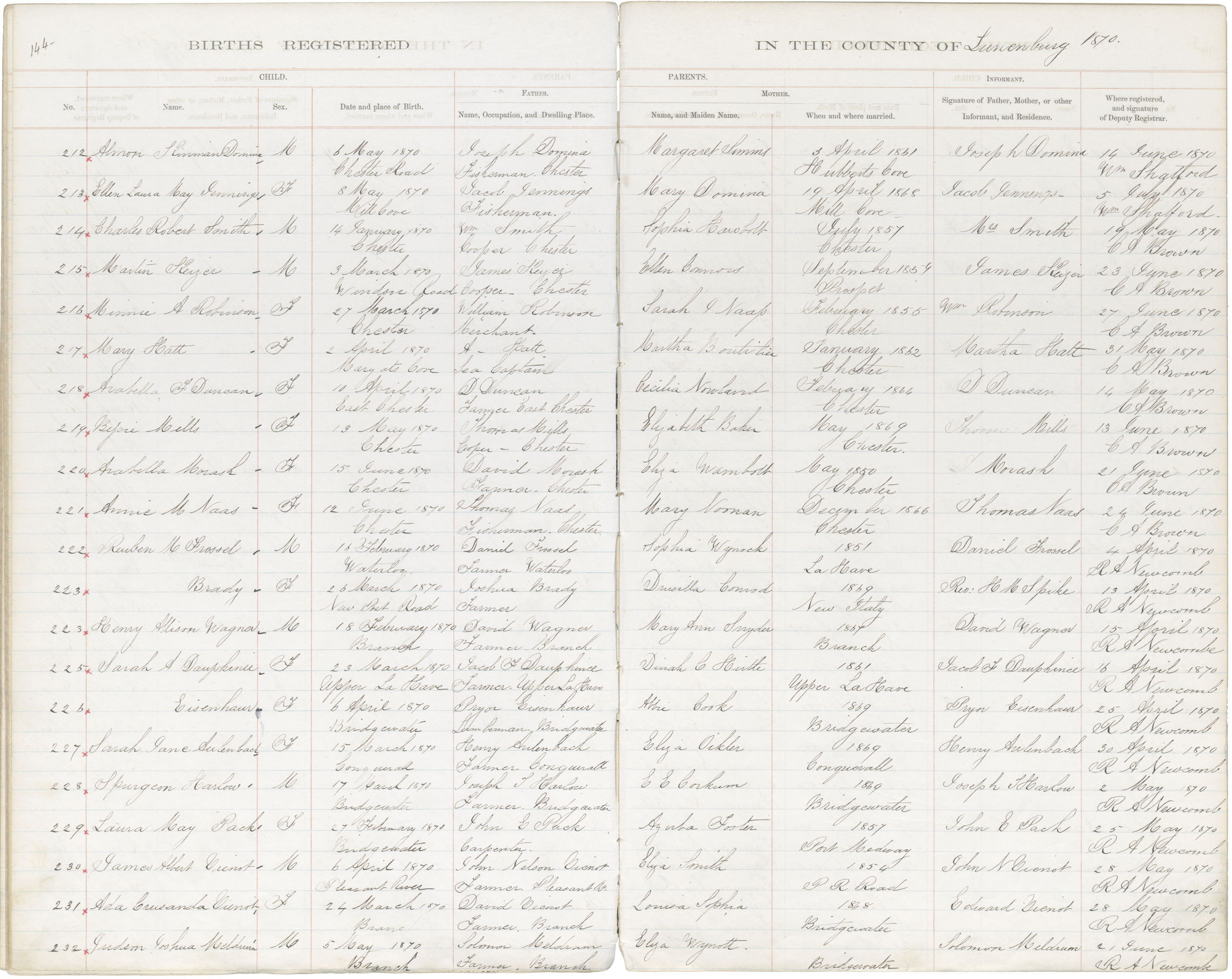 Birth Registration: Year: 1870 book: 1817 page: 144 number: 232