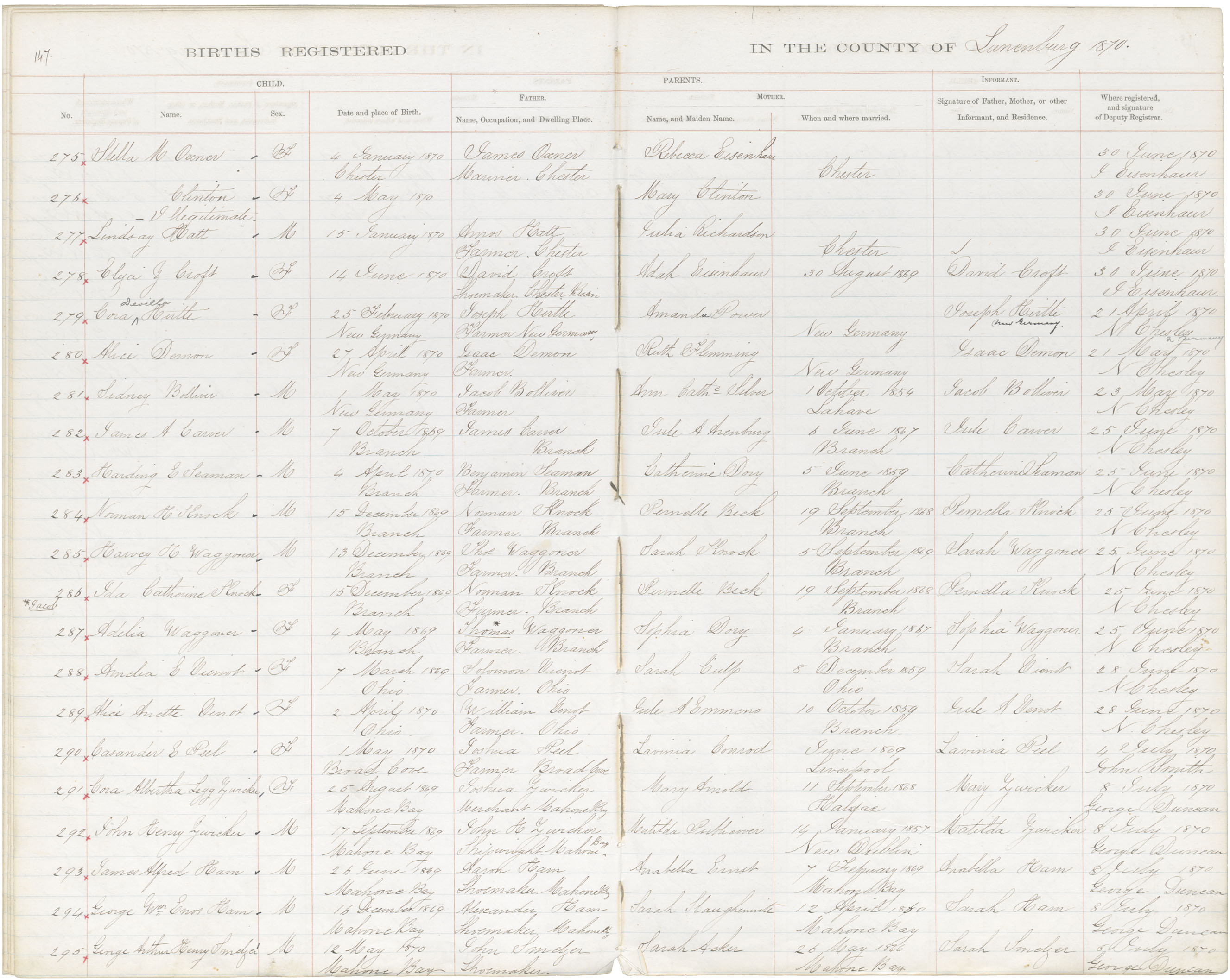 Birth Registration: Year: 1870 book: 1817 page: 147 number: 295