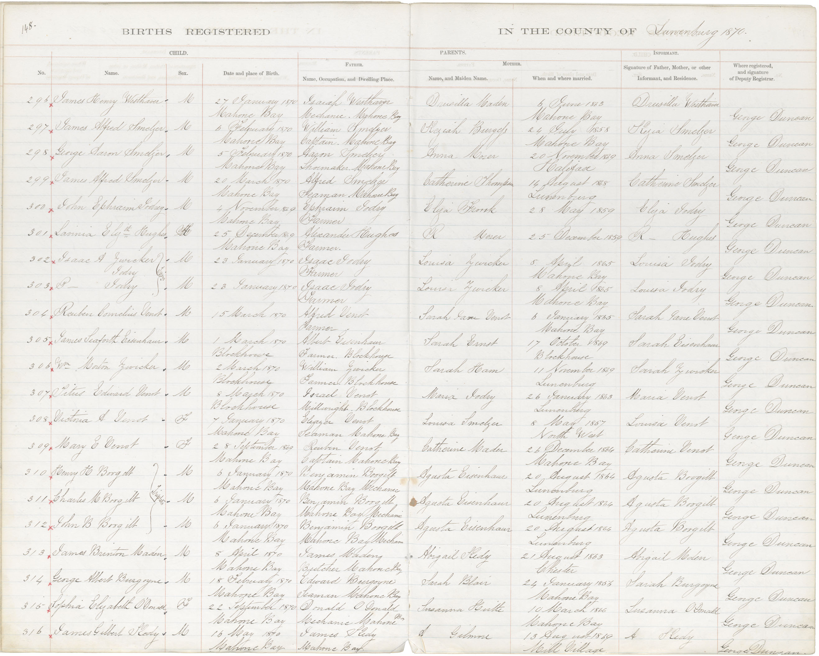 Birth Registration: Year: 1870 book: 1817 page: 148 number: 316