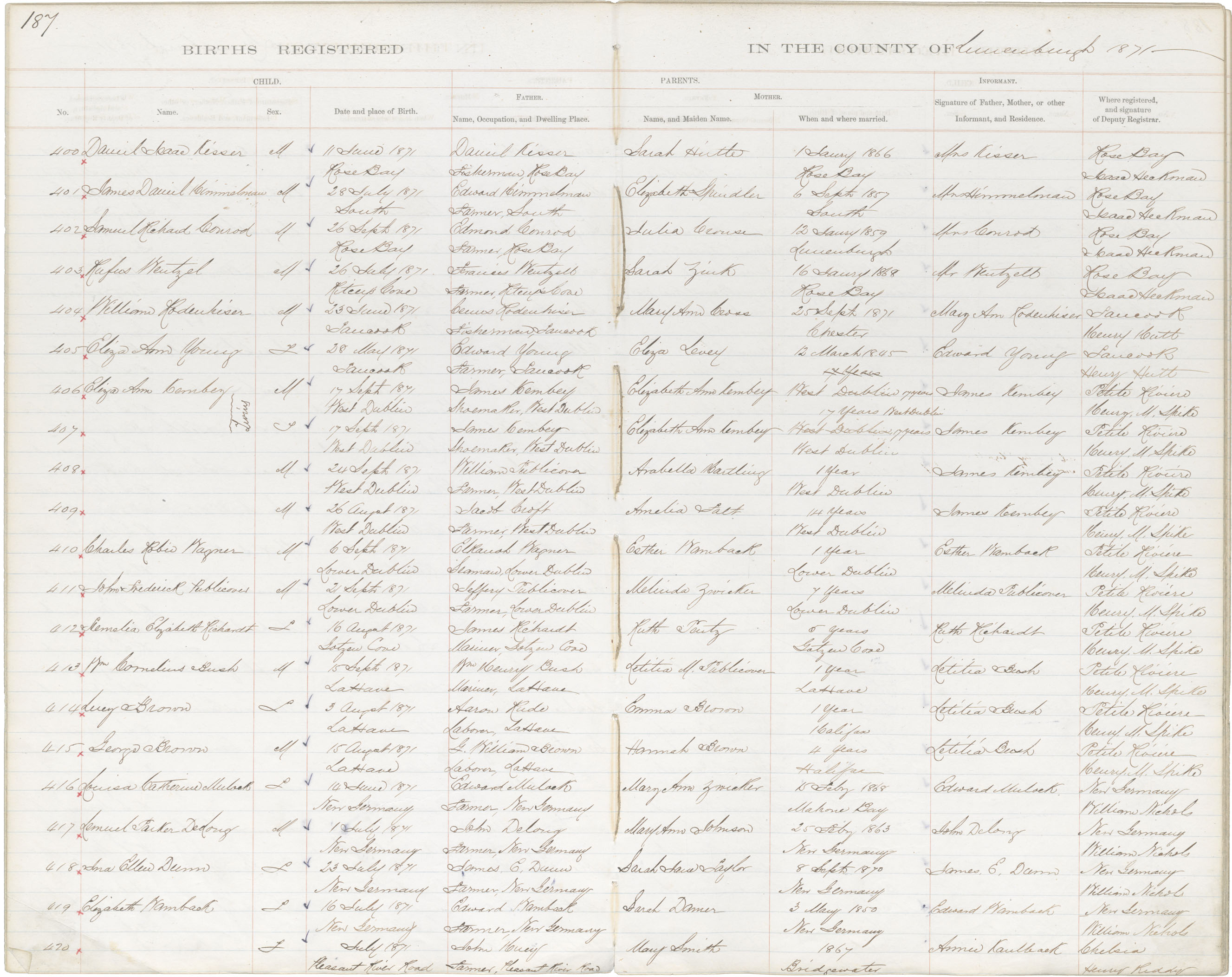 Female Birth Registration: Year: 1871 book: 1817 page: 187 number: 420