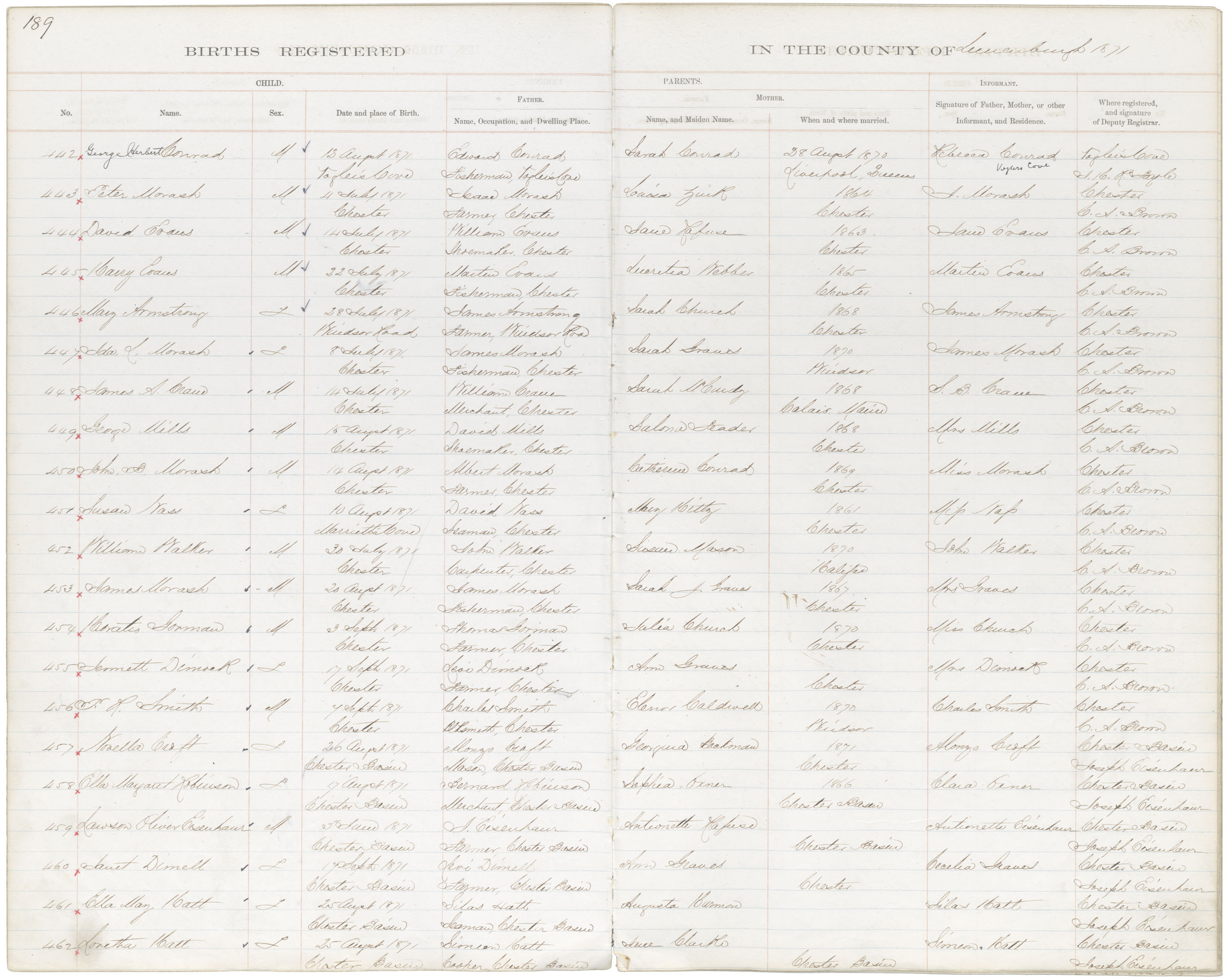 Birth Registration: Year: 1871 book: 1817 page: 189 number: 462