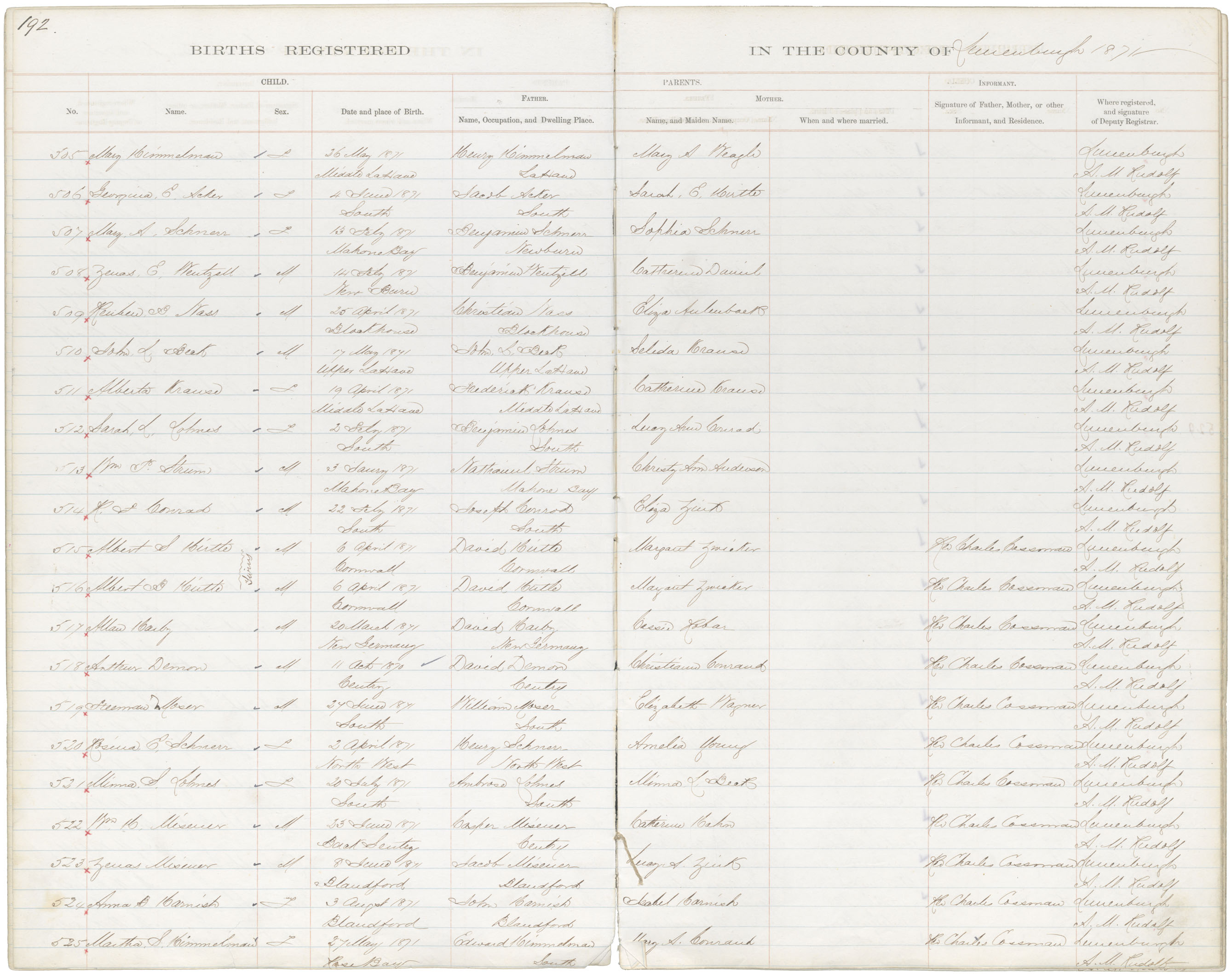 Birth Registration: Year: 1871 book: 1817 page: 192 number: 525